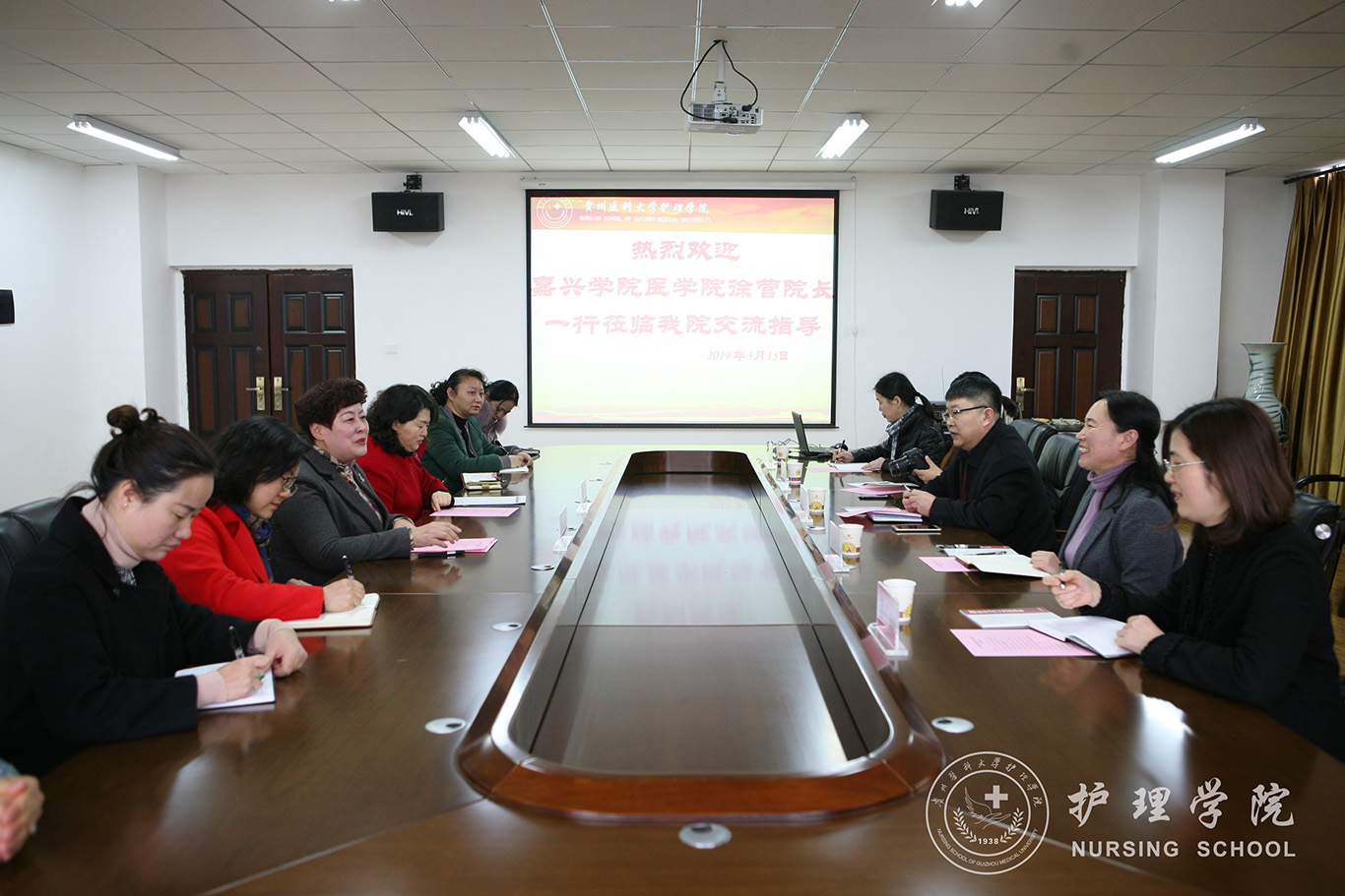 3月15日上午,嘉兴公司医公司徐营副经理、肖素香护理系主任一行5人到公司太阳成集团tyc234cc交流学习专业认证工作经验。太阳成集团tyc234cc在百川楼会议室召开了交流座谈会热情接待了徐营一行,院领导班子及全体教职工参会。会议由公司经理贾秀英主持。