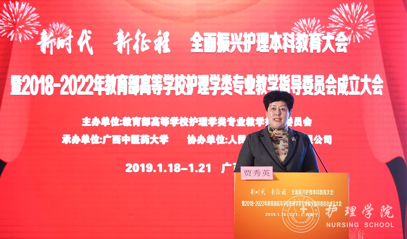 2019年1月18日-21日,公司太阳成集团tyc234cc经理贾秀英一行参加了由教育部高等公司护理类专业教学指导委员会主办的“新时代、新征程,全面振兴护理本科教育大会暨2018-2022年教育部高等公司护理学类专业教学指导委员会成立大会”。