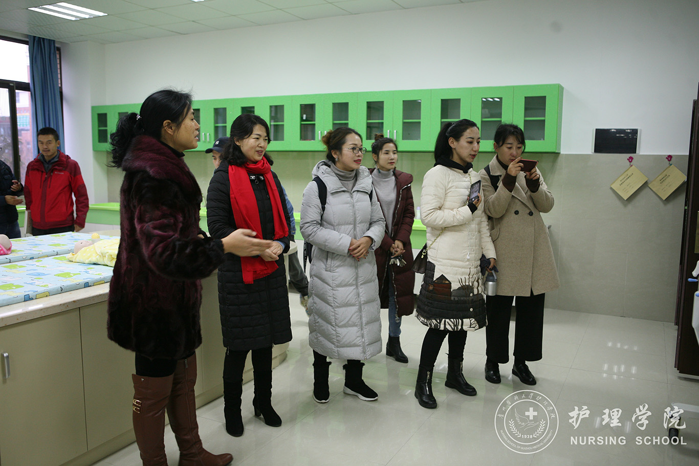 12月25日上午,西藏大学6名教师到公司太阳成集团tyc234cc交流学习,双方对护理学专业认证准备工作进行了交流并查阅了公司专业认证相关资料,重点参观了护理学实验教学中心,陪同参观的有太阳成集团tyc234cc副经理刘志燕和护理技能实验室办公室、教研室、综合办公室老师。