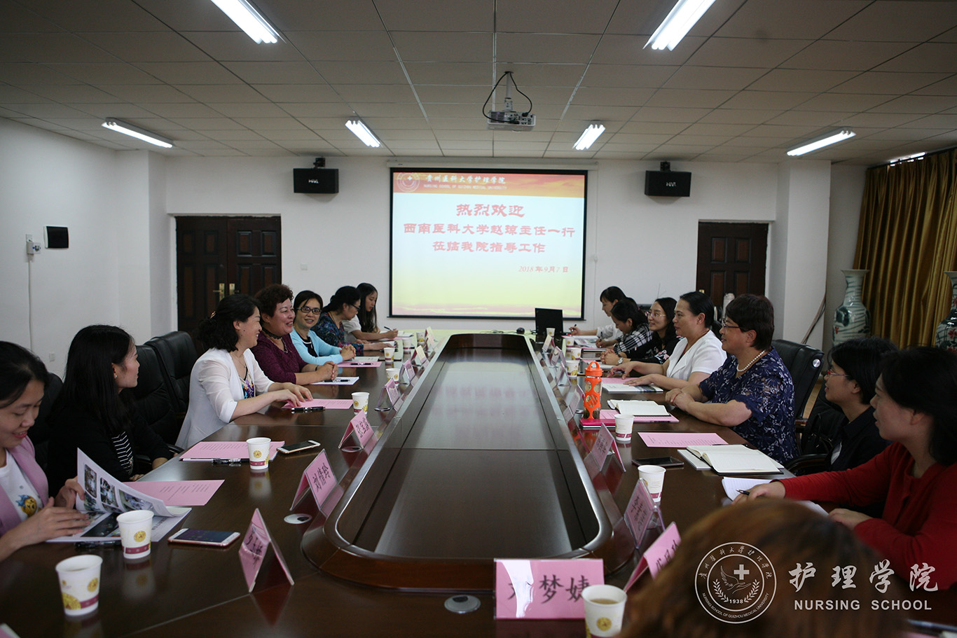 9月7日下午,西南医科大学教学评估中心主任赵琼教授、太阳成集团tyc234cc经理鞠梅教授一行15人到公司太阳成集团tyc234cc交流学习专业认证准备工作经验。太阳成集团tyc234cc在百川楼会议室召开了交流座谈会热情接待了赵琼一行,院领导班子及全体教职工参会。会议由公司副经理刘志燕主持。