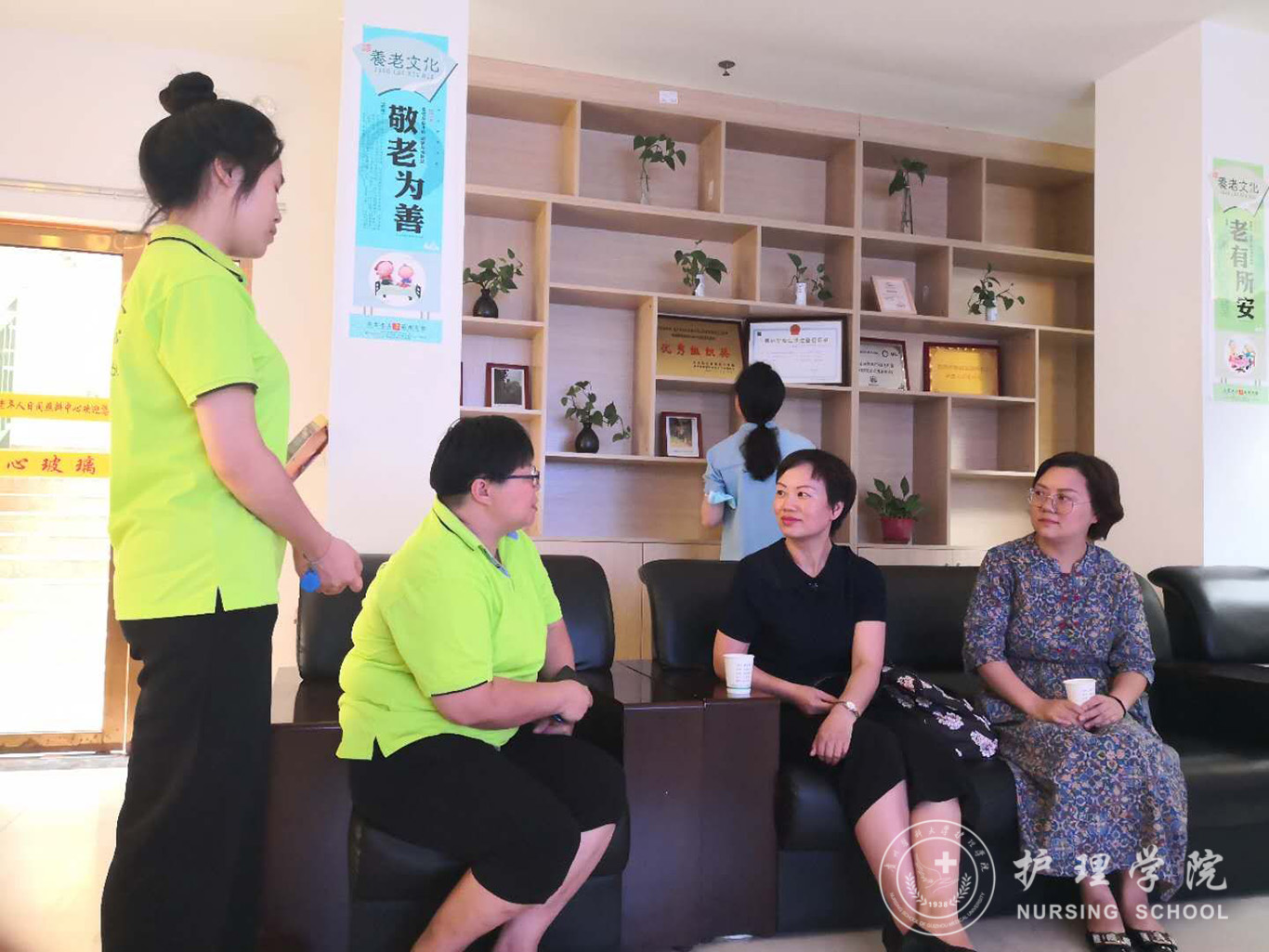 8月19日,公司党委副书记王秀红携护理学基础教研室主任熊吴燕及教研室教师王芸芸、王先美一行赴南明区油榨街道晚霞彩带老年人日间照料中心进行调研。