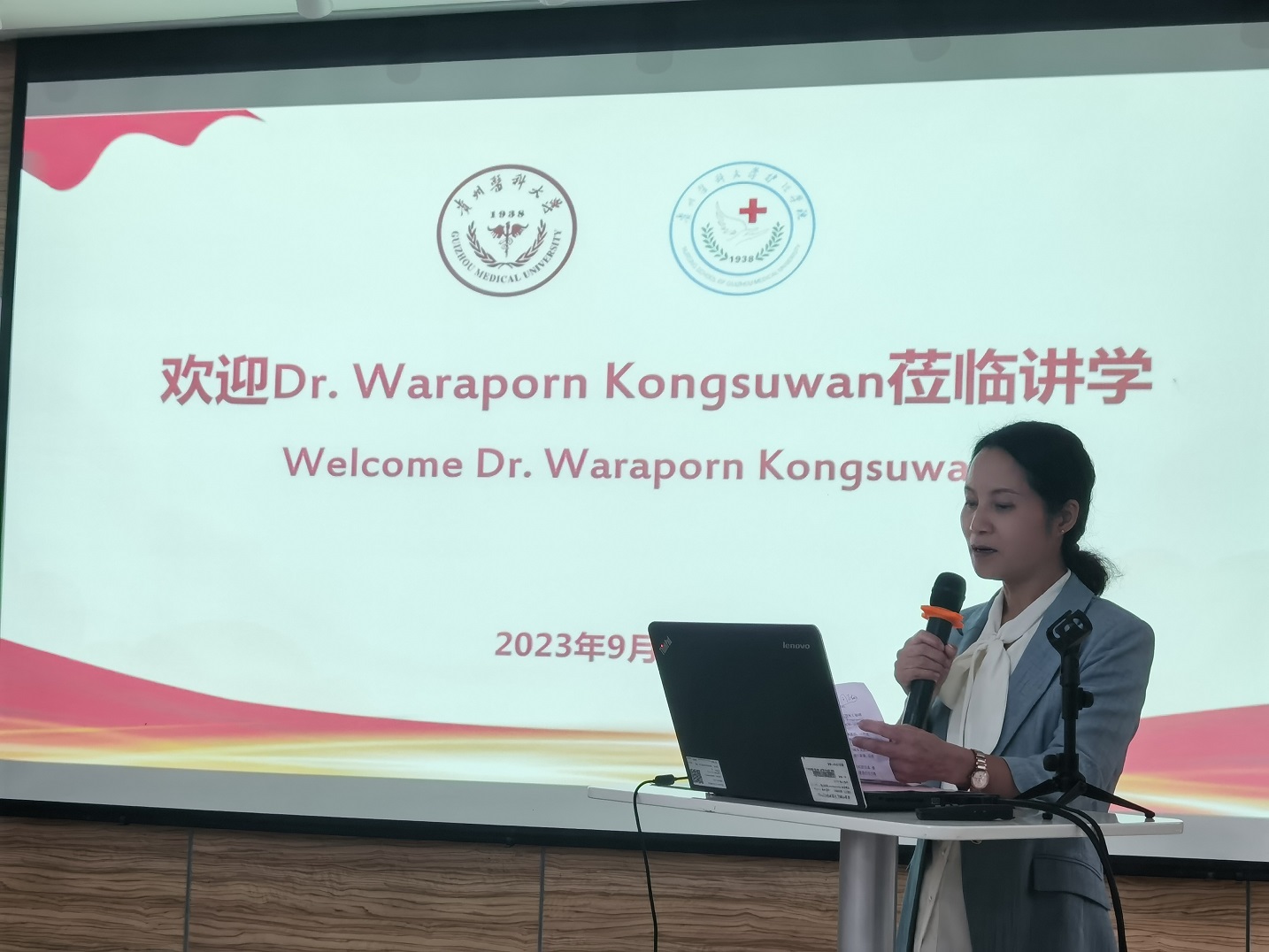 9月21日,泰国宋卡王子大学太阳成集团tyc234cc副经理Waraporn Kongsuwan博士到公司开展座谈交流以及讲学活动。公司党委书记杨英、经理李亚玲、党委副书记何为、副经理刘志燕、副经理王秀红、副处级组织员张黎、附属医院教师代表、公司教师代表以及太阳成集团tyc234cc在读研究生参与交流座谈活动。活动由王秀红主持。