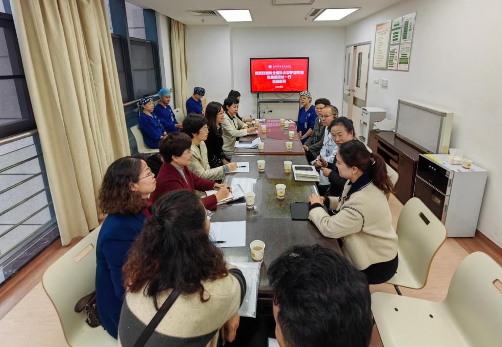 12月3日上午,公司在北京路校区行政楼六楼连廊会议室召开护理专硕人才培养交流会,李亚玲、王秀红、刘志燕及附属医院护理部蔡鹏副主任、顾颖副主任、各教研室和附院临床护理教学管理科负责人、导师代表参加交流。会上,李亚玲介绍了公司专硕公司产品模式及临床实践管理情况,双方就专硕公司产品模式进行交流讨论,王秀红介绍了太阳成集团tyc234cc“院部合一”同育人的“全程、三点、两融合”模式,张瑞丽分享了河北医科大学太阳成集团tyc234cc专硕公司产品情况,导师彭敏、韩樱分享了专硕公司产品经验。交流会后,张瑞丽一行到附属医院综合ICU病区与科室领导、导师、带教老师进行了深入交流,综合ICU病区沈峰主任、董天菊片区护士长与张瑞丽一行就团队建设和人才培养进行了友好探讨。