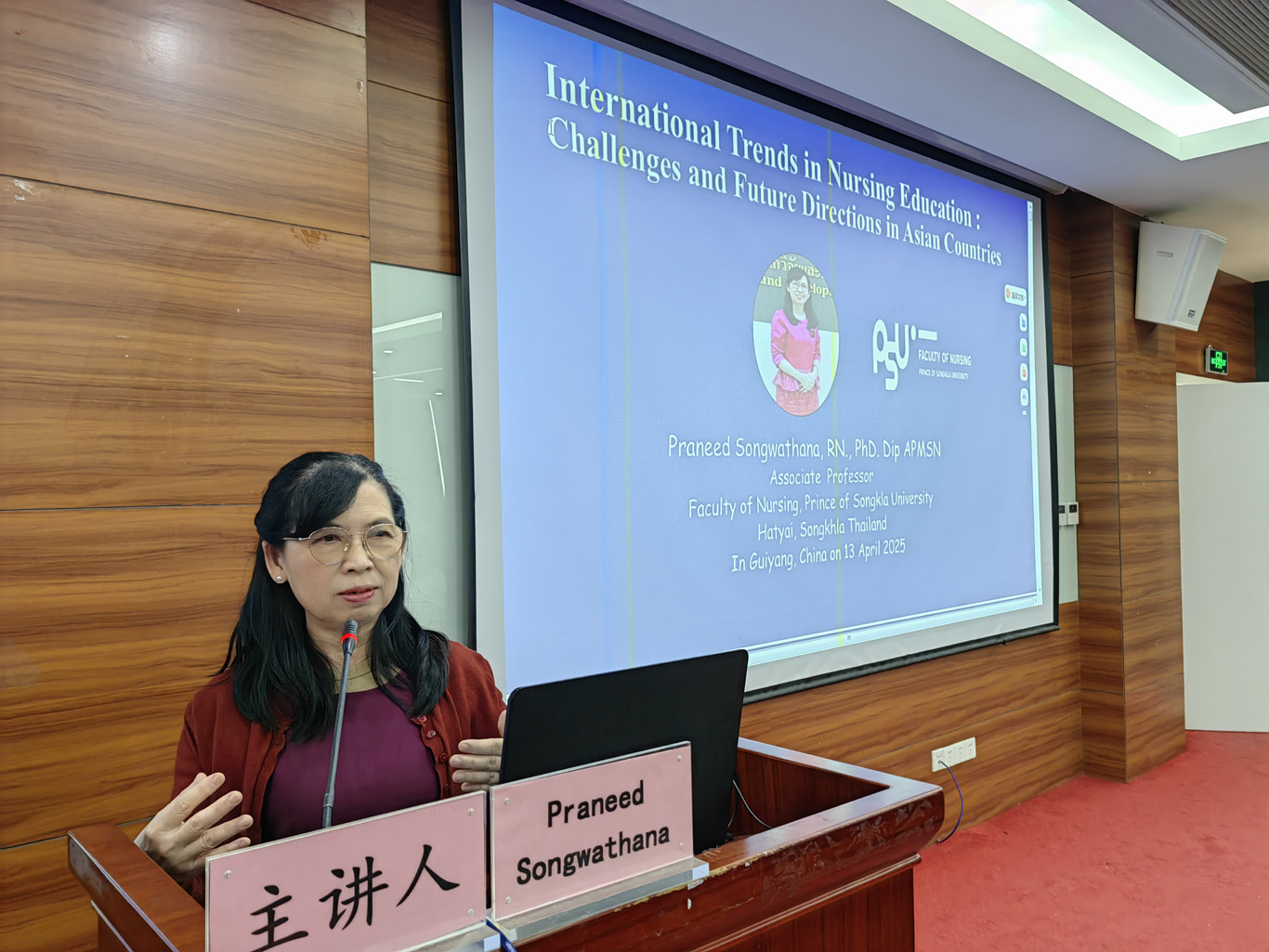 4月13日,太阳成集团tyc234cc在北京路校区临床技能中心207会议室举办2025年第一期葆真讲坛,特邀泰国宋卡王子大学健康与持续护理研究与创新中心主任Praneed Songwathana副教授做客讲坛,为太阳成集团tyc234cc教师、研究生导师和研究生同学带来“护理教育的国际趋势与教学创新”讲座,并与在座师生进行了友好深入的学术交流。活动由太阳成集团tyc234cc经理王秀红主持。