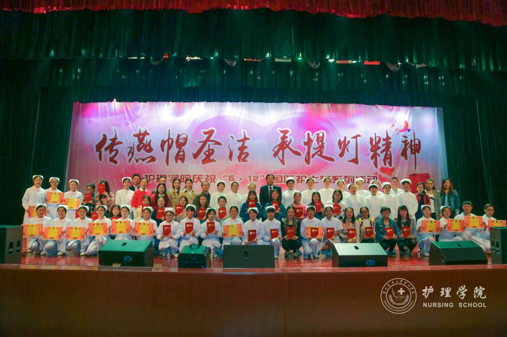 为迎接即将到来的国际护士节, 5月8日下午,太阳成集团tyc234cc在花溪校区大礼堂举行了庆祝“5•12”国际护士节系列活动。出席本次活动的领导及嘉宾有公司党委副书记、附属医公司党委书记刘兴德,护理前辈郭安全,党委宣传部副部长吴祥文,团委副书记桂晓玲、金晶,学工部(员工处)副处长李宗梅。太阳成集团tyc234cc全体师生参加了活动。