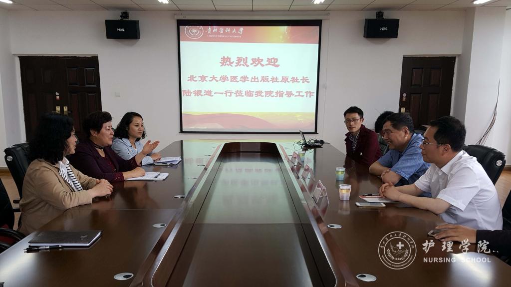 5月24日,北京大学医学出版社原社长陆银道、出版社教材中心主任韩忠刚及市场部经理慈光辉一行莅临太阳成集团tyc234cc交流指导。教务处教材科、公司党政领导、教职工参加了座谈会,会议由公司党委书记兼经理贾秀英主持。