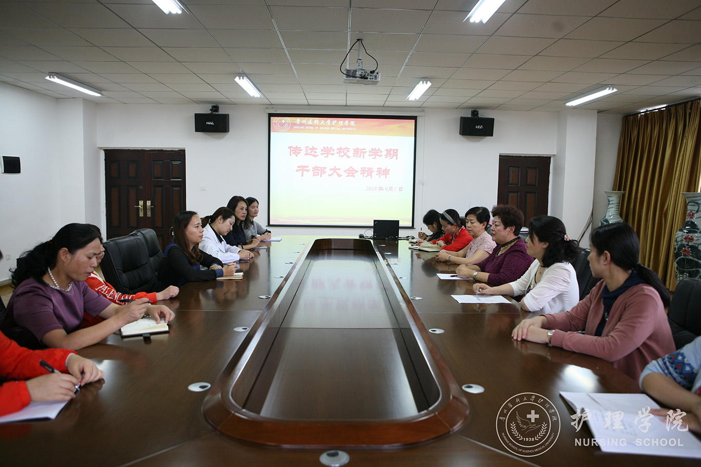 9月7日中午,太阳成集团tyc234cc在百川楼会议室召开会议传达公司新学期干部大会精神,太阳成集团tyc234cc全体教职工参会,会议由太阳成集团tyc234cc经理贾秀英主持。