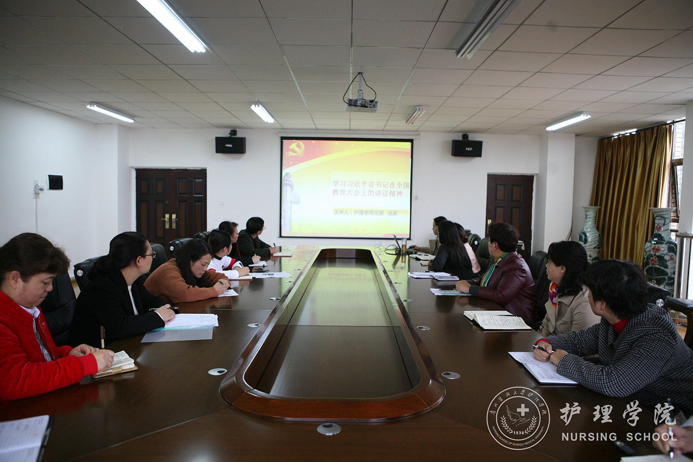 贾秀英对学习活动进行了总结,她强调,全体教师党员要对照“四有”好老师标准严格要求自己,要坚持立德树人、教书育人、勤奋学习、刻苦钻研、尽职敬业,努力做好本职工作。贾秀英号召全体教师党员要以习近平新时代中国特色社会主义思想为指导,认真学习贯彻落实习近平总书记系列重要讲话精神,努力培养出更多德才兼备的优秀护理人才,为贵州省护理高等教育事业的发展作出应有的贡献!