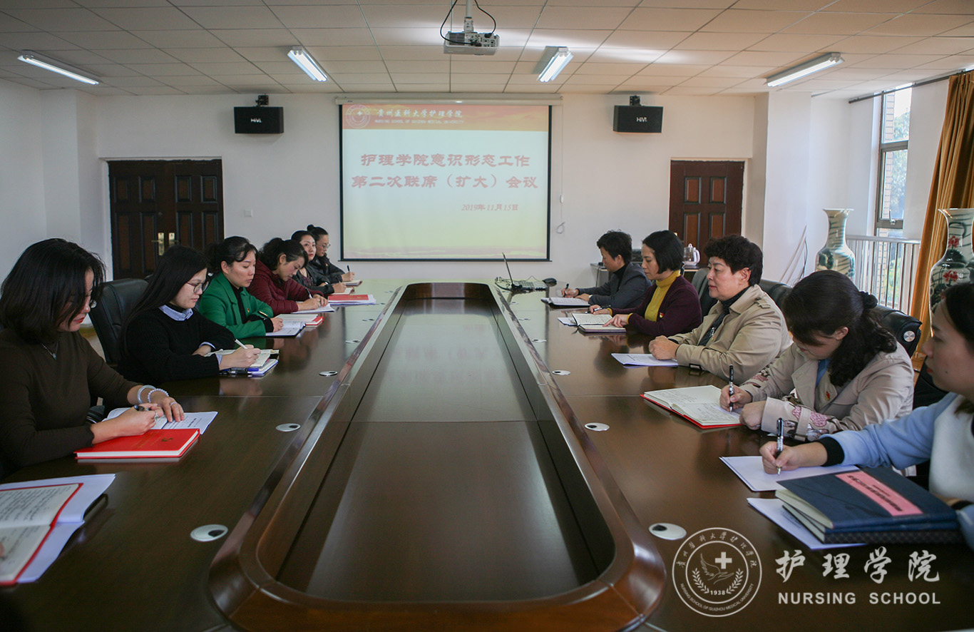 11月15日,2019年第二次意识形态工作联席(扩大)会议在南校区百川楼5楼会议室召开。院领导班子成员,副科级以上干部,全体辅导员、班主任,部分教师代表参加了会议。本次会议特邀马克思主义公司专职教师禹辉映参加并做交流发言。会议由公司党委书记杨英主持。