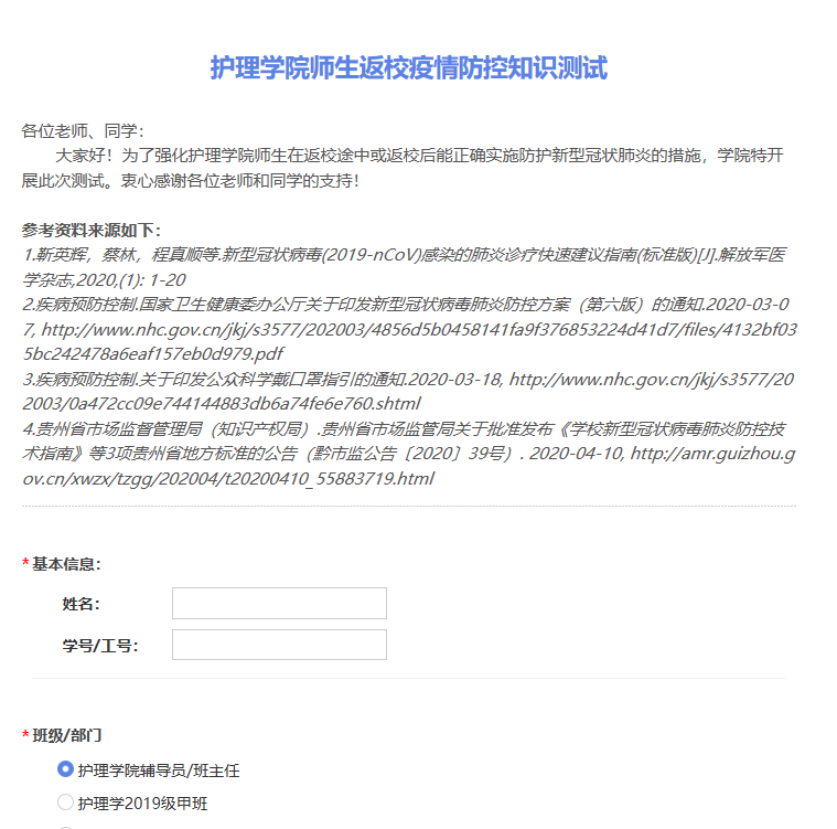 此次测试以“问卷星”为载体,采用线上闭卷考试的形式。试题涵盖了新型冠状肺炎的流行病学特点、返校途中的防护措施、返校后的隔离原则、用餐注意事项、消毒用品及使用方法、口罩的使用及处理、洗手的时机等新冠肺炎防控校园重点知识。截至4月22日全部师生完成测试。