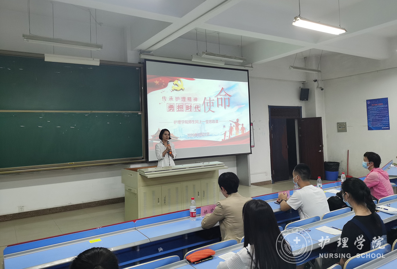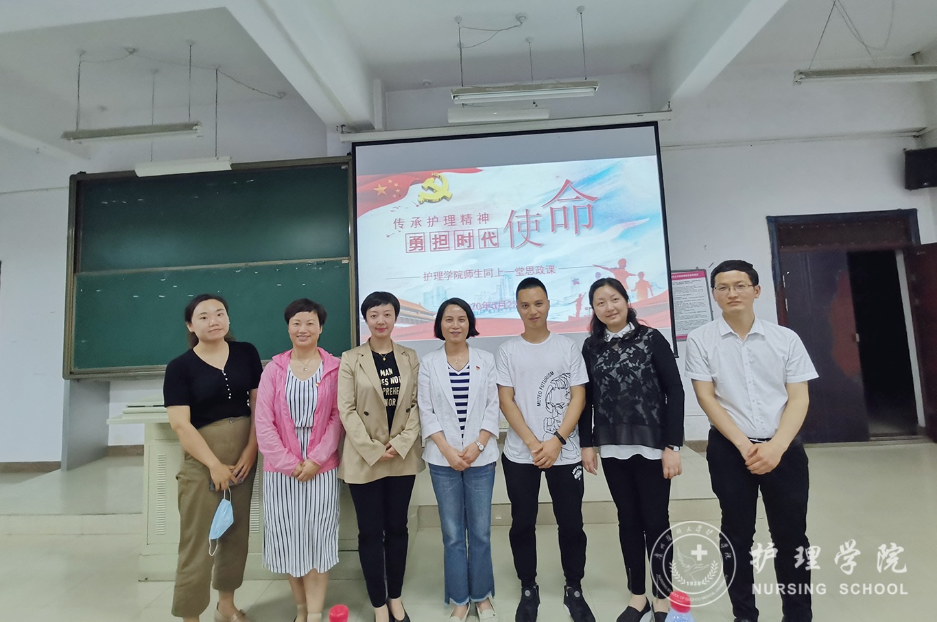 5月22日,太阳成集团tyc234cc在北校区2201教室以“传承护理精神,勇担时代使命”为主题开展了师生同上一堂思政课活动,采取线上线下同步教学,腾讯会议直播的形式进行。本次思政课邀请了公司优秀毕业生援鄂英雄姚欢、黄秀峰分享了他们的抗疫故事。活动由公司党委副书记王秀红主持,公司全体教师、员工党员、入党积极分子参加。