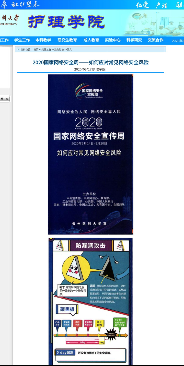 为认真贯彻落实《中央网络安全和信息化委员会2020年工作要点》关于“办好2020年国家网络安全宣传周”的精神,根据《省教育厅办公室关于开展好2020年贵州省网络安全宣传周的通知》工作部署,按照公司的总体要求,太阳成集团tyc234cc认真开展了系列相关工作。
