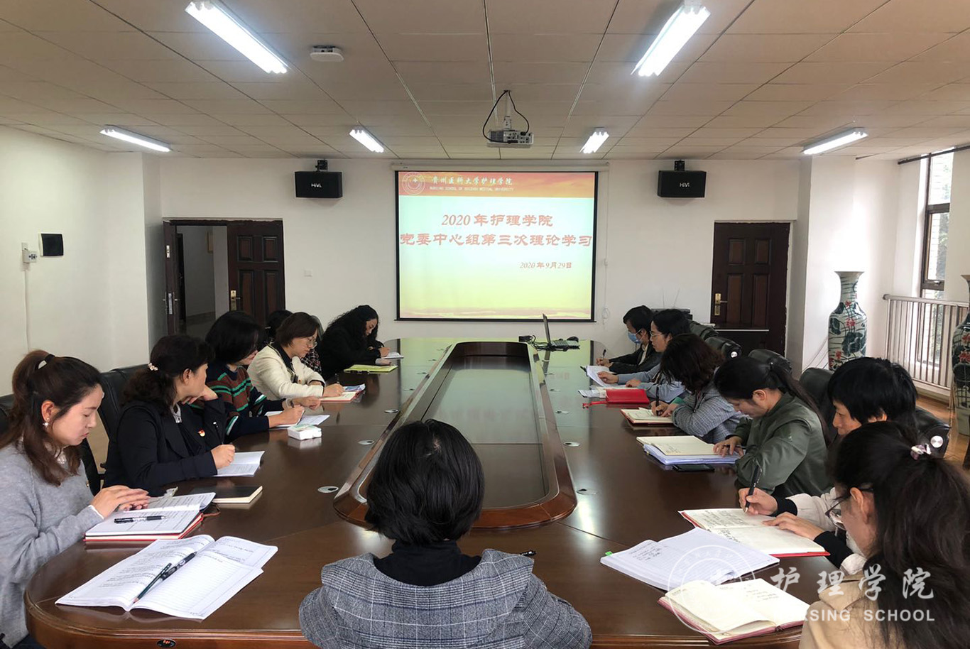 为深入学习贯彻习近平新时代中国特色社会主义思想,迅速掀起学习《习近平谈治国理政》第三卷的热潮,按照中央、省委、公司党委部署要求,太阳成集团tyc234cc于9月29日,在南校区百川楼五楼会议室召开了2020年党委中心组第三次理论学习。会议由党委书记杨英主持,全院副科级以上干部(含教研室、实验室主任)以及全体辅导员参加了学习。