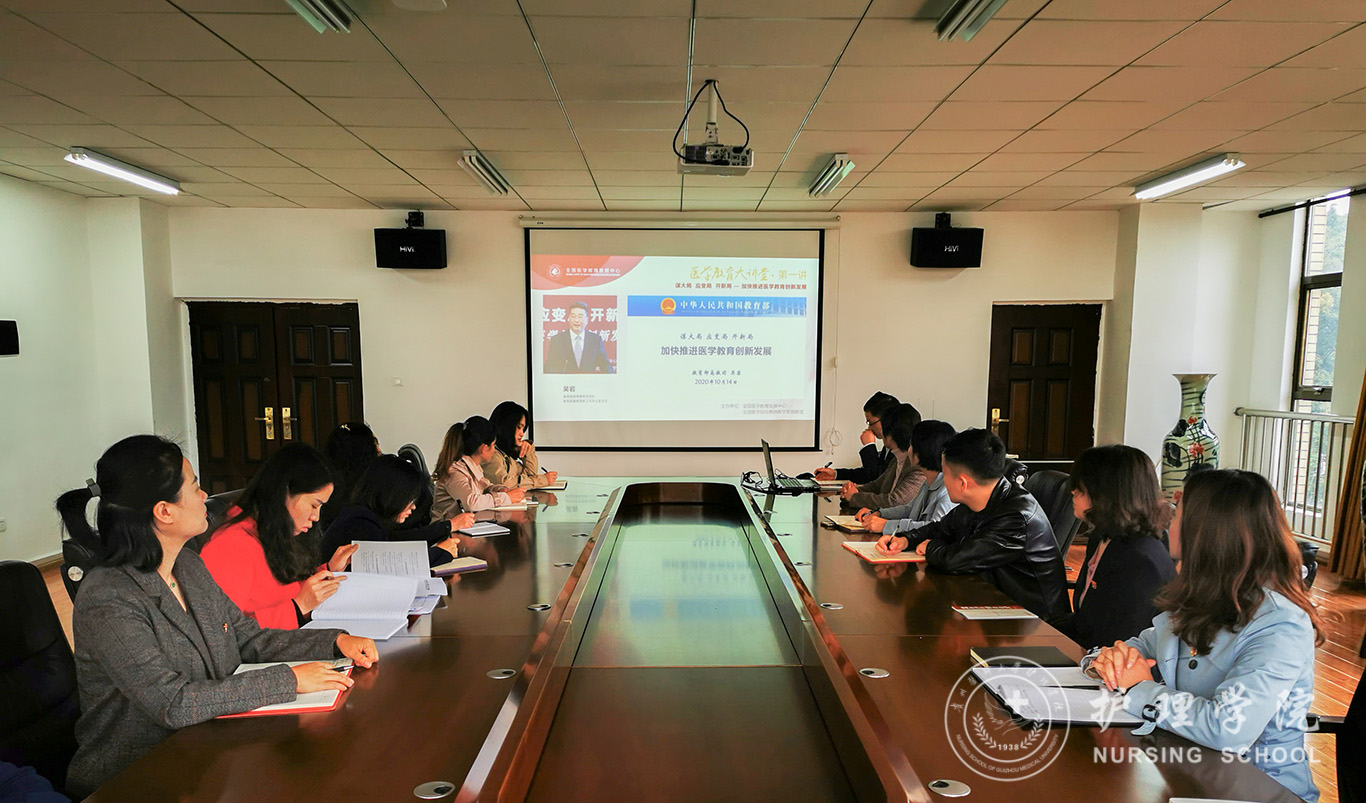 讲座结束后,太阳成集团tyc234cc教职工党支部开展了政治理论学习活动,组织教职工党员学习了《中共贵州省委教育工委关于全面推进高等公司“五级书记抓党建”的指导意见》、《习近平谈治国理政》第三卷之四“坚持以人民为中心”、《习近平在全国抗击新冠肺炎疫情表彰大会上的讲话》。活动结束后,杨英对讲座及政治理论学习活动进行了总结,她指出,吴岩司长的报告高屋建瓴、系统全面、内容丰富,有助于我们全面把握和领会国务院办公厅《关于加快医学教育创新发展的指导意见》精神,吴岩司长的报告也指明了当前医学教育的中心任务和改革方向。杨英强调,全体教师党员要以习近平新时代中国特色社会主义思想为指导,弘扬抗疫精神,结合学习内容和岗位实际进行系统思考、深刻领会、贯彻落实,努力为护理教育事业的改革发展和开创医学教育工作新局面作贡献。