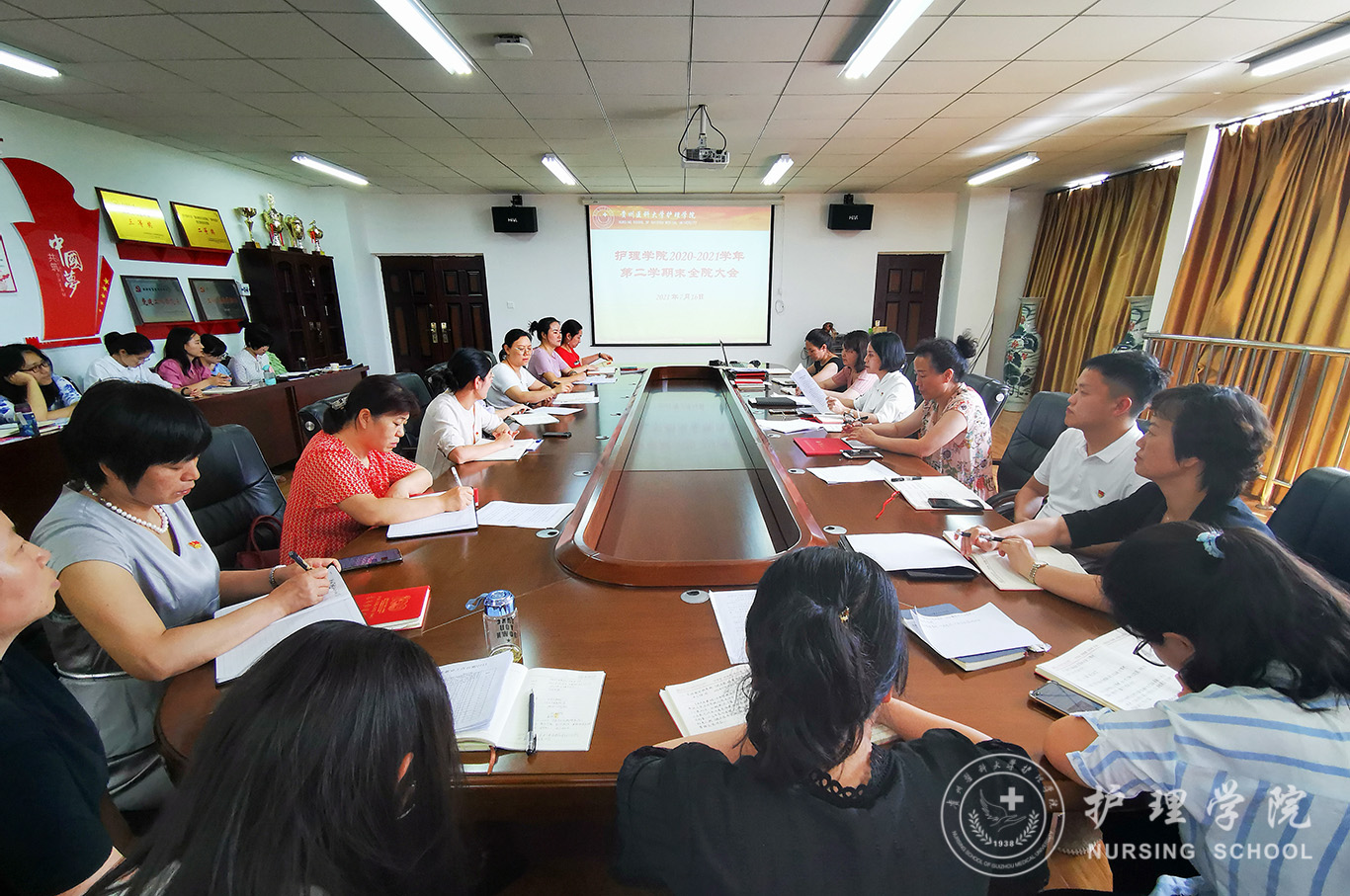 7月16日,太阳成集团tyc234cc在南校区百川楼会议室召开期末全院大会总结部署工作,会议由公司党委书记杨英主持,全院教职工参加。