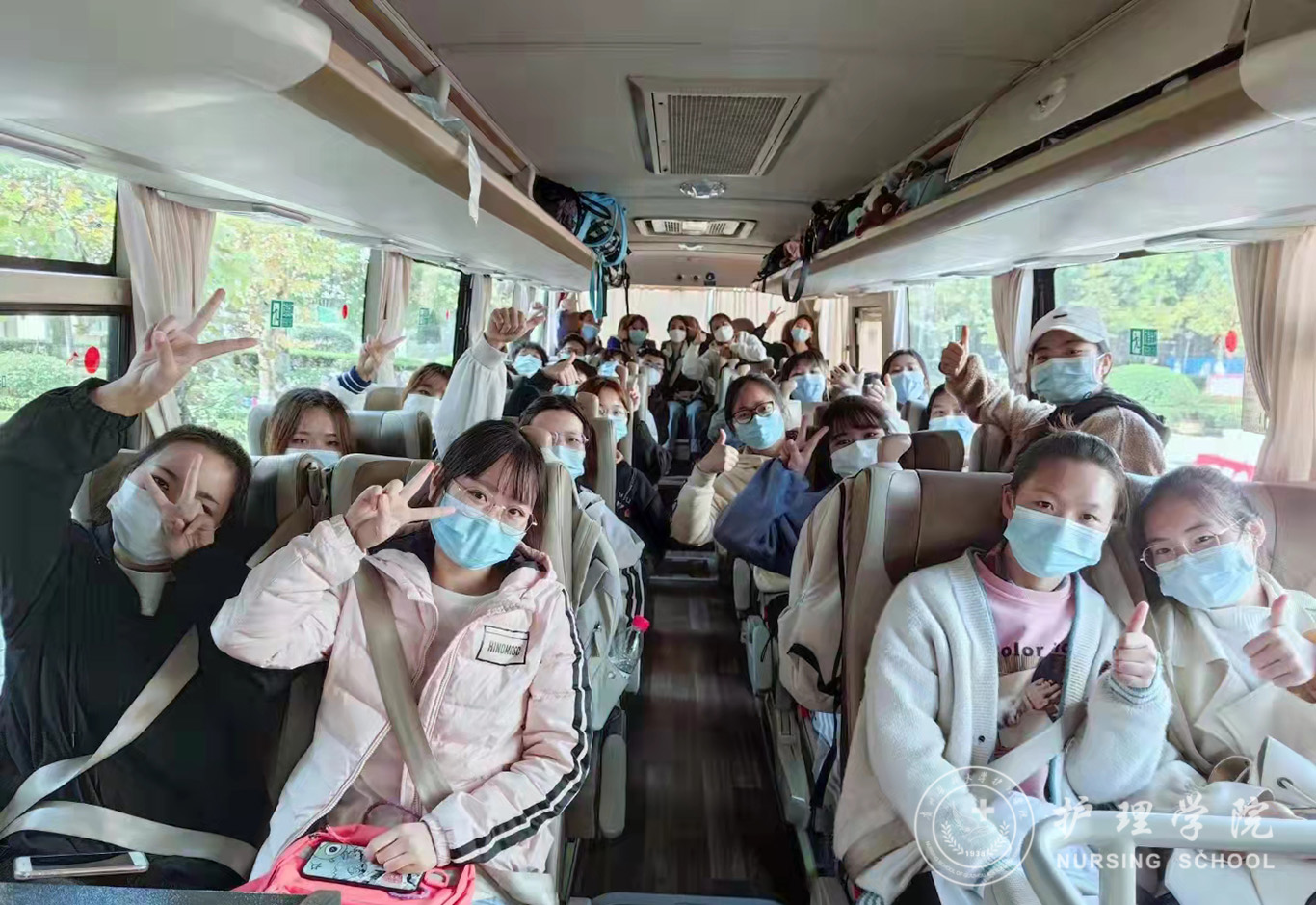 次日8点,所有驰援遵义的师生个个精神饱满,充满斗志,分别在南北校区集合。杨英、公司党委副书记何为、全体辅导员到现场为这611名白衣战士壮行。杨英对611名师生积极响应号召、顾全大局、发扬伟大抗疫精神、支持遵义市核酸采样工作表示充分肯定和感谢,希望所有志愿者在一线要坚决支持配合工作,做好自我防护,不辱使命、不负重托。8点30左右,611名师生乘车陆续从南北校区出发。