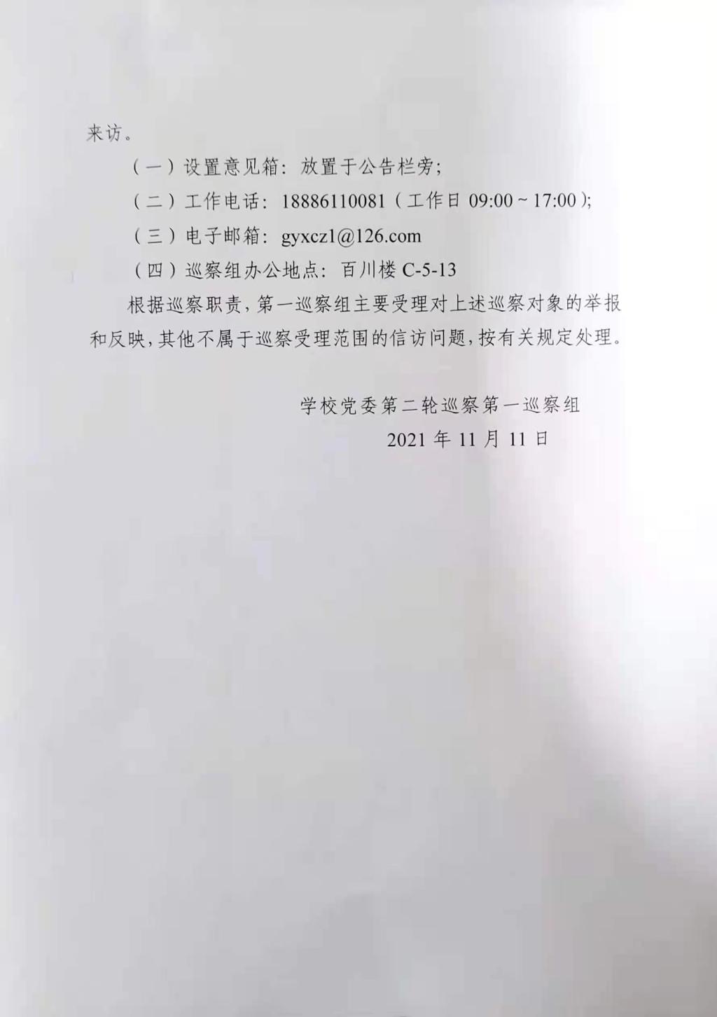 公司第一届党委第二轮巡察第一巡察组巡察公告