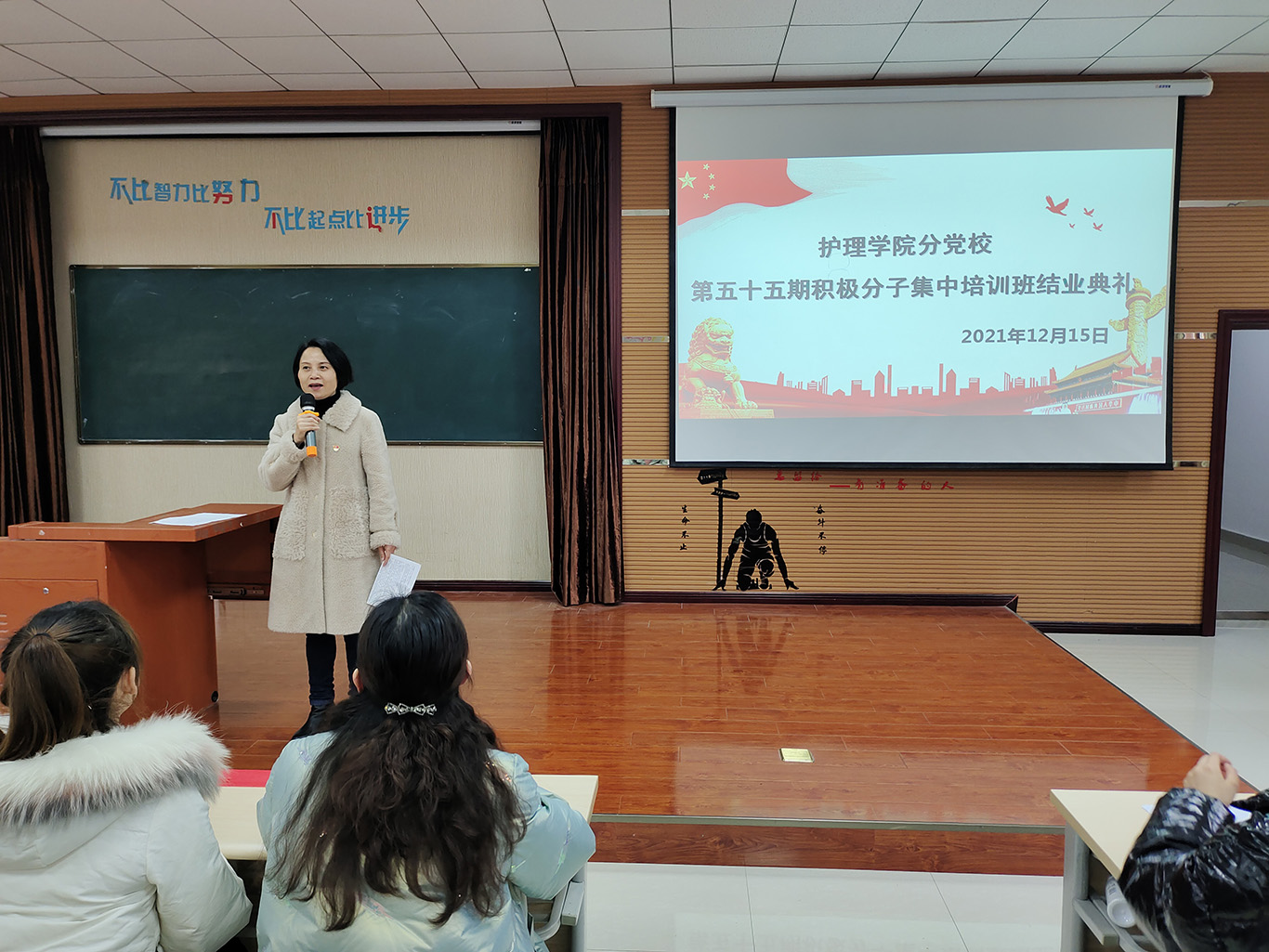 12月15日,太阳成集团tyc234cc分党校第55期入党积极分子培训班结业典礼在南校区百川楼1101教室圆满举行。公司党委书记兼公司分党校董事长杨英、副处级组织员张黎、以及全体学员参与此次会议。会议由正科级组织员曾敏主持。