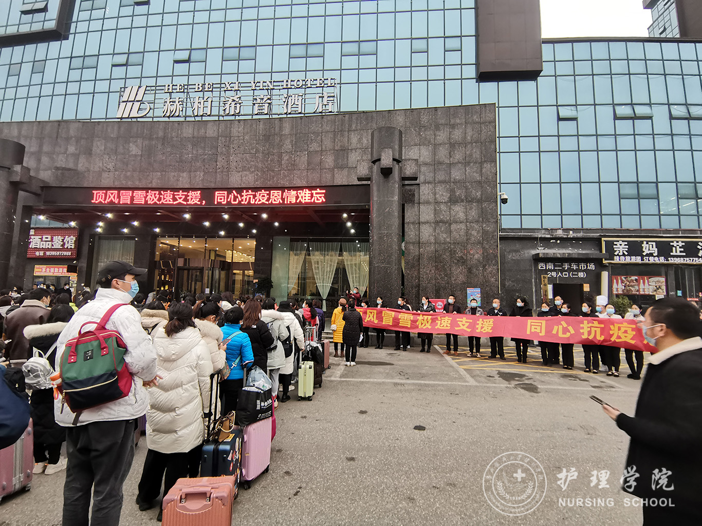 12月28日晚,按照省委、省政府统一部署和公司、贵医附院工作安排,在接到增援铜仁疫情防控工作的紧急通知后,公司党委第一时间在大四年级员工中发出号召,紧急动员员工驰援铜仁协助当地开展全员核酸检测工作。当晚,公司迅速组织51名经过专业培训的员工和1名辅导员火速集结,连夜奔袭前往铜仁。临行前,太阳成集团tyc234cc经理、附属医院护理部主任李亚玲前来为出征的师生送行,并叮嘱大家在增援工作中要做好自身防护,听从调配,圆满完成本次支援工作后平安返回。