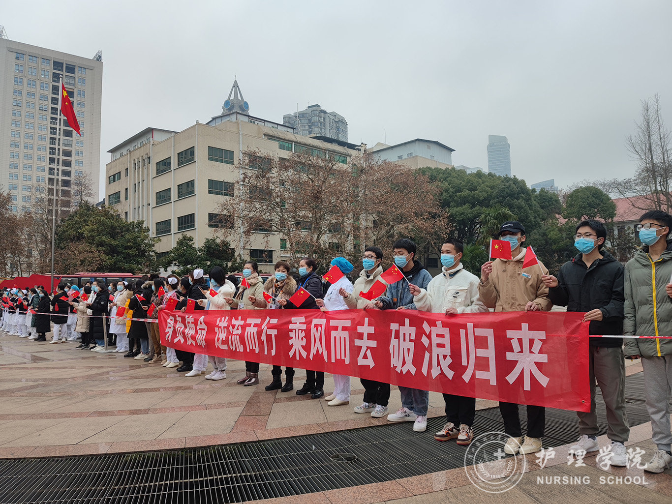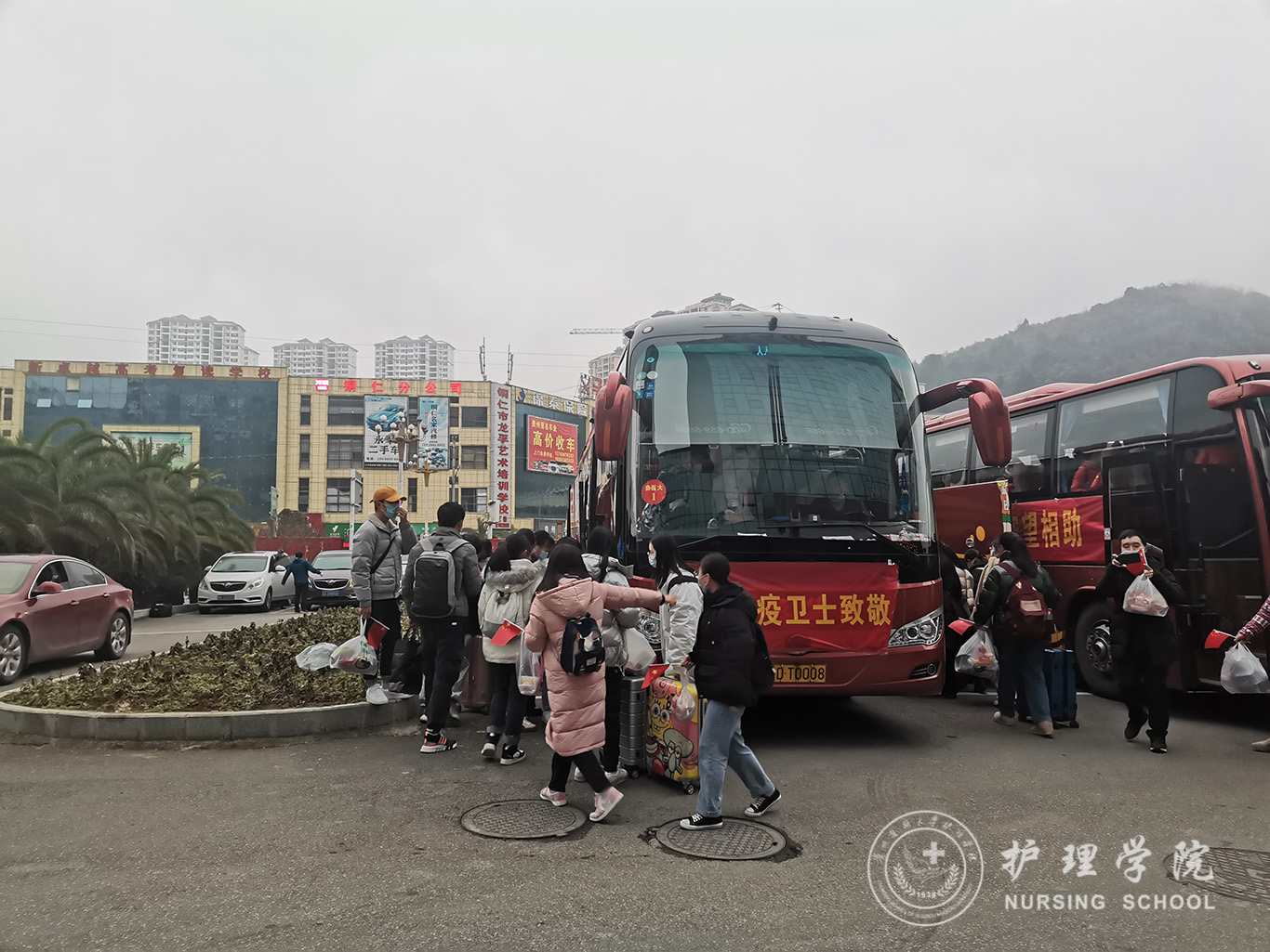12月31日,经过一天的休整,太阳成集团tyc234cc支援铜仁的师生在短暂的告别仪式后,跟随附属医院医疗队一同出发返回贵阳。返回时,等候在北校区道路两旁的师生高扬着国旗齐声呼喊:“欢迎回家!”,用掌声欢迎全体援铜的师生平安返回。“身负使命,逆行出征,乘风而去,破浪而归”。美丽的铜仁,留下了护理学子奉献的身影。