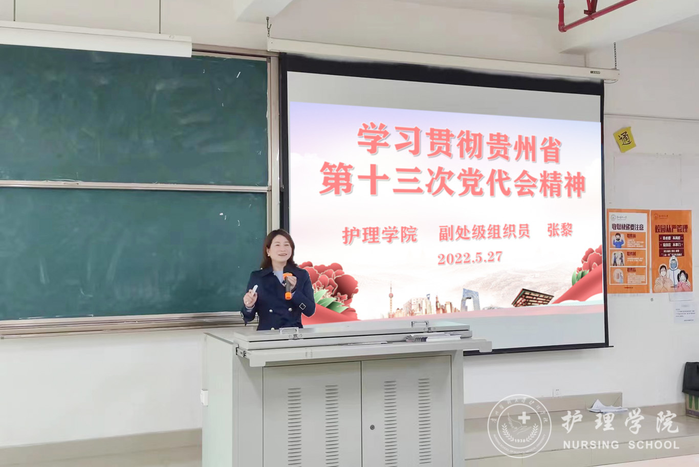 5月27日,为深入学习贯彻中国共产党贵州省第十三次代表大会精神,公司党委委员、副处级组织员张黎在北校区4201教室为护理学2019级甲班和公司第12期发展对象培训班学员进行了大会精神宣讲。