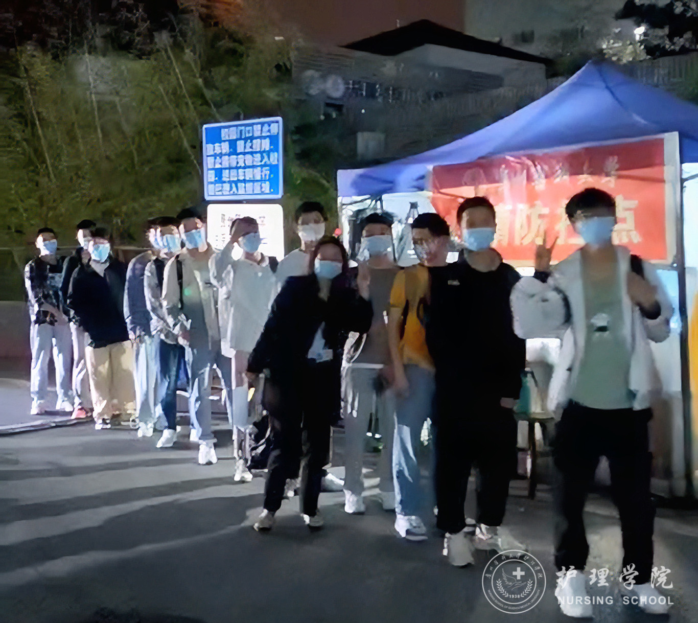 在接到上级指令的第一时间,公司党委召开紧急会议,研究成立增援核酸采样志愿者工作领导小组,细化分工、明确责任。会后,因地制宜开展了线上培训工作,再次强化志愿者们的个人防护意识和能力,确保核酸采样辅助工作安全有序开展。凌晨2时,504名师生精神饱满、充满斗志的“逆行”上岗,在严格遵守防疫规定和妥善做好自身防护的前提下,积极参与我市核酸采样辅助工作,用实际行动彰显贵医人、护理人的责任和担当。