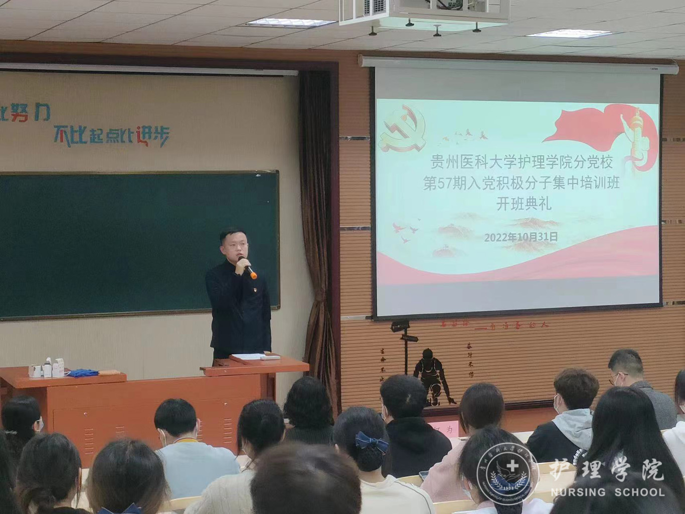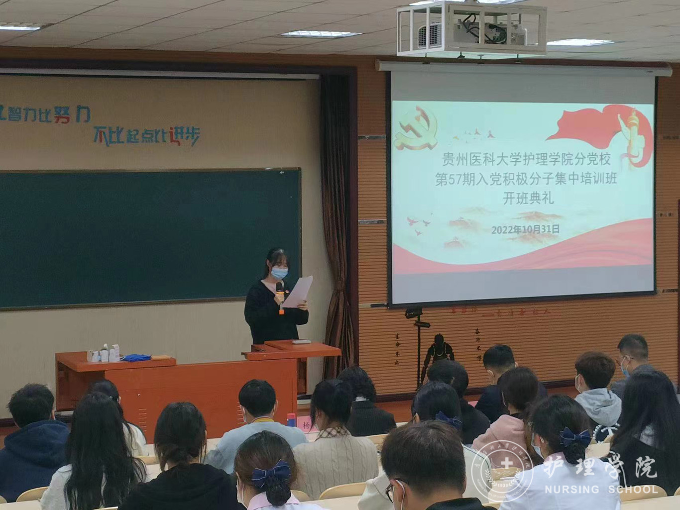 10月31日,太阳成集团tyc234cc分党校第57期入党积极分子培训班开班典礼在百川楼1101教室举行。公司党委书记杨英、党委副书记兼纪委书记何为、2022级辅导员梁子豪及84名学员参加本次开班典礼,会议由正科级组织员曾敏主持。