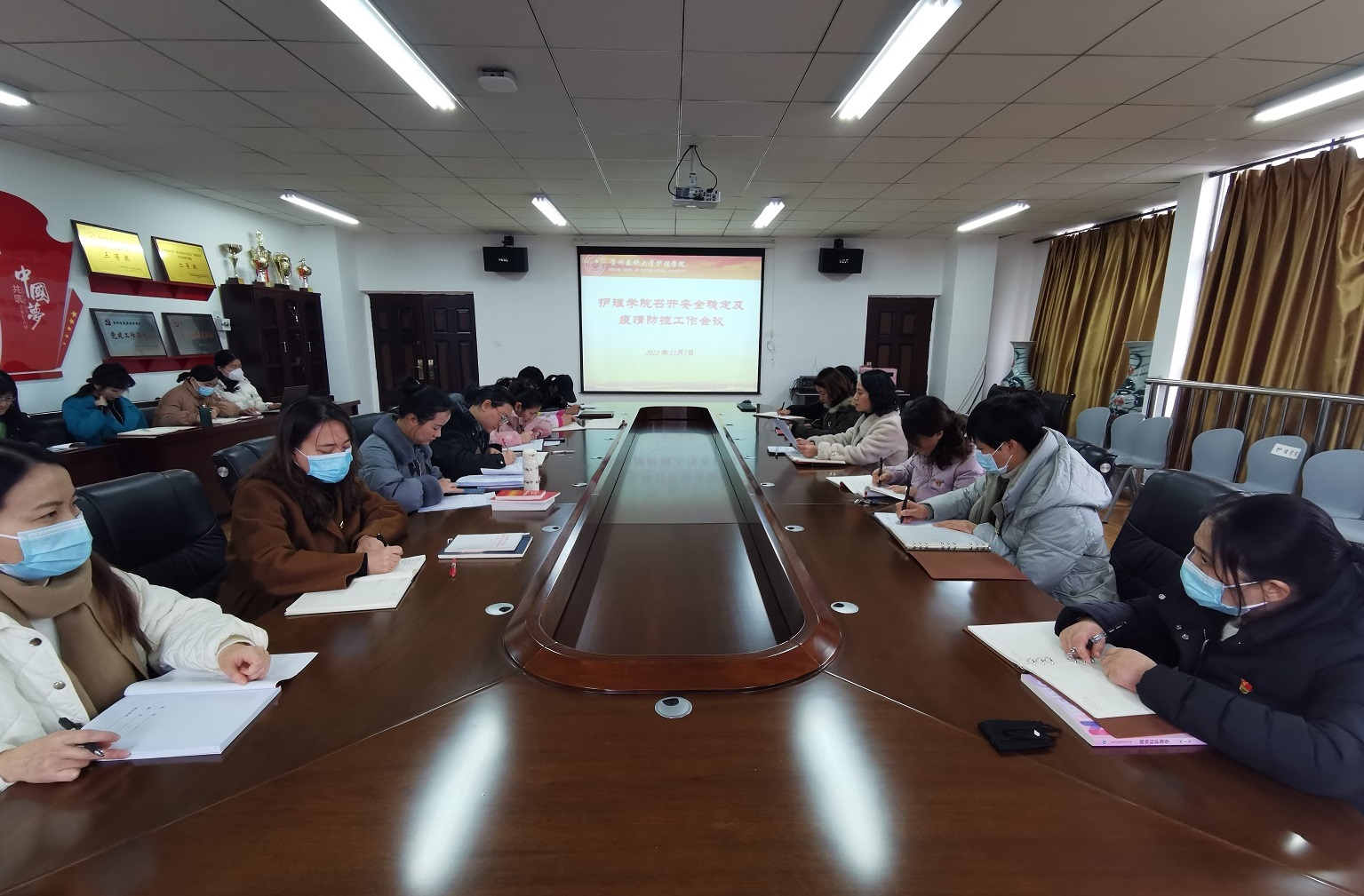 12月7日,太阳成集团tyc234cc在南校区百川楼会议室召开安全稳定及疫情防控工作会议,传达相关文件和会议精神并部署工作,会议由公司党委书记杨英主持,全院教职工参加。