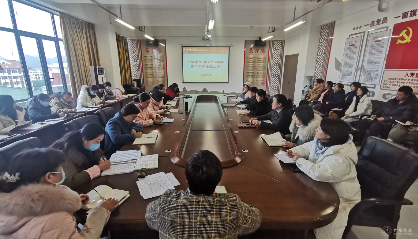 2月26日,太阳成集团tyc234cc在云漫湖校区酬勤楼六楼会议室召开全院大会安排部署新学期工作,会议由公司党委书记杨英主持,全体教职工参会。