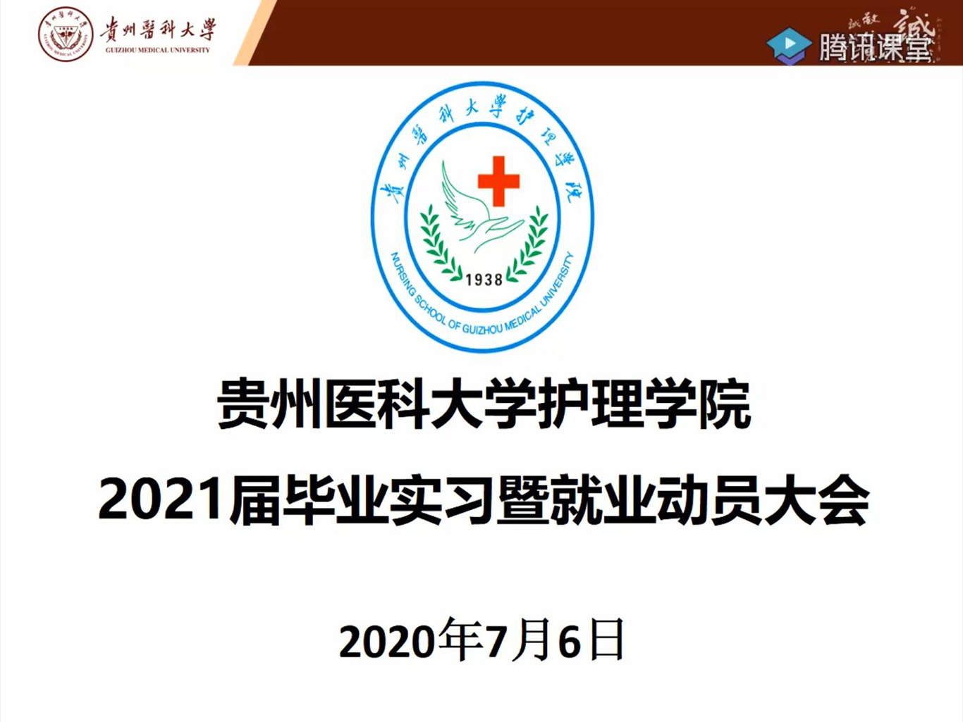 7月6日,太阳成集团tyc234cc通过腾讯课堂召开了2021届护生毕业实习暨就业动员大会。公司党委书记杨英、党委副书记王秀红、副经理刘志燕,2017级本科、专升本辅导员及2017级护理本科、专升本全体同学550余人参加了动员大会。会议由太阳成集团tyc234cc生产实习科科长柳忠燕主持。