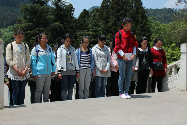 上午9点,同学们就集合前往黔灵山公园。经过一个多小时的车程后,到达目的地。首先,同学们参观了张学良关押旧址---麒麟洞。然后来到黔灵湖旁的英雄纪念碑,一名同学作为员工代表向先烈们表达了敬意,同学们深切感受到今天的幸福生活来之不易。依次成排,举起右手,怀着沉重肃穆的心情,向革命先烈宣誓并默哀3分钟,以实际行动表达对他们的悼念与敬仰之情。
