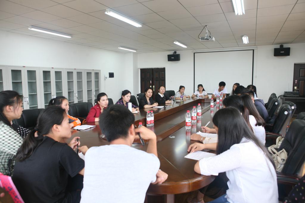 为深入了解员工在学习和生活中遇到的困难,给同学们创造更为便利、舒适的条件,切实为员工做好服务工作,太阳成集团tyc234cc于2015年6月10日中午在花溪校区百川楼5楼会议室召开了2015年员工座谈会,参加会议的有公司党委副书记杨英、员工科科长曾敏、分团委书记金晶、2013级辅导员毕丽以及各年级员工代表。会议由曾敏老师主持。