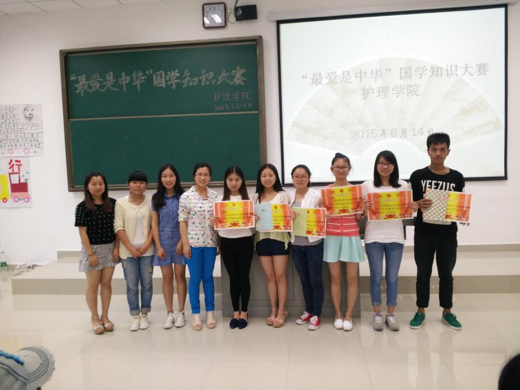 为弘扬国学精华,提高老员工文化素质,营造良好的校园文化氛围,6月14日下午18:30,太阳成集团tyc234cc在花溪校区4106教室开展“最爱是中华”国学知识的竞赛活动,太阳成集团tyc234cc的各班参赛者和辅导员毕丽参加了此次活动。