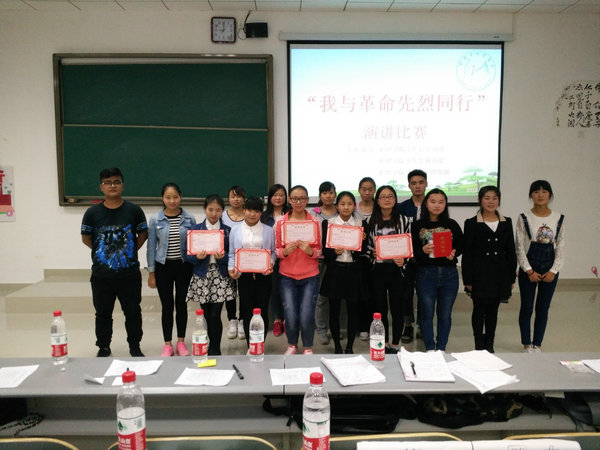 为了纪念“12.9”运动80周年和抗日战争胜利70周年,宣传爱国教育,弘扬民族精神。2015年10月14日晚7:00,太阳成集团tyc234cc在花溪新校区4106教室举办主题为“我与革命先烈同行”的演讲比赛。本次比赛由公司员工会主席团及各部门部长担任评委,比赛在王洁和于琪源两名同学的主持下正式开始。