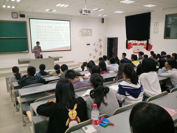 10月22日下午17:30,太阳成集团tyc234cc员工会在4106教室召开10月份例会暨政治理论、团课学习。员工会全体成员参加了此次会议。