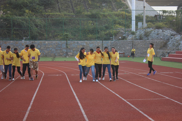 本次活动主要分两部分,一是团队游戏,二是撕名牌大战。所有参与者以抽签的形式被分为红、橙、绿、紫四个队。活动在萝卜蹲、木头人、你比我猜、十人九足四个热身小游戏中拉开了序幕。每个队队员在这四个游戏中,都充分发挥各自特长,充当各种角色,表现出团结一致、密切合作、克服困难的团队精神。在接下来的撕名牌大战中,活动氛围更是上了一层台阶,队员们互相保护、协同抗进、提高警惕,与敌人相互残杀,更加懂得团结、合作的重要性。此外,金晶老师也全身心融入到激烈的游戏中,和大家打成一片,使活动开展得很成功。足球场上充满了大家的欢声笑语,在美丽的夕阳下,全体队员拍照留念,记录下这段精彩的周六时光。