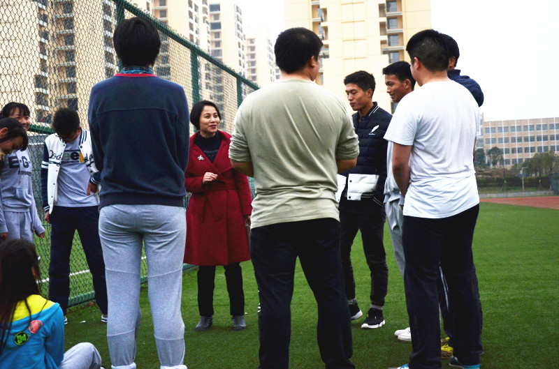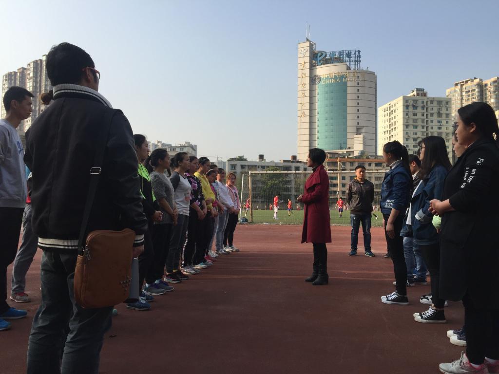 太阳成集团tyc234cc一年一度的运动会即将开始,太阳成集团tyc234cc的运动健儿们也进入了紧张的训练中。为了给运动员们鼓舞士气,3月25日、28日下午5点,公司党委副书记杨英、员工科科长曾敏、辅导员李海林、王晓玲分别到南北校区足球场看望运动员。