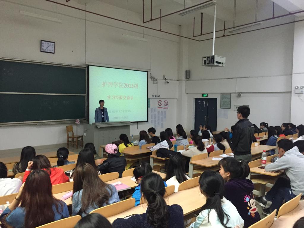 4月22日中午12点20分,公司在北校区4101教室为即将进入实习的员工举行了一场实习经验交流会。会议邀请了2012级莫芸芸等8位同学作为分享人,辅导员王晓玲老师和2013级全体同学参加了此次会议。