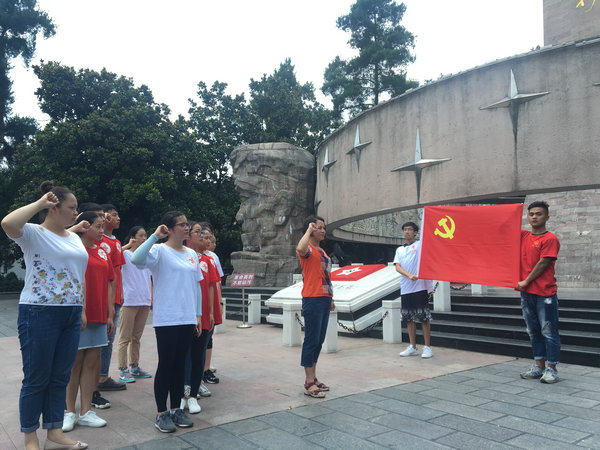 接受红色革命精神的洗礼后,师生们步行前往红军山。在党旗和纪念碑的见证下,由杨英副书记领誓,组织党员同学重温入党誓词,坚定理想信念和为党的事业奋斗终身的决心。随后,全体同学进行默哀仪式,表达对革命先烈的哀思,并献上自制的花束及纸鹤。最后,杨英副书记对本次社会实践活动进行总结。她首先赞扬了同学们在本次社会实践中表现出来的积极与主动,对师生们两天的辛勤付出表示肯定。同时也对同学们提出了一些要求,希望大家在社会实践中不仅要学会将理论与实践相结合,服务群众;也要学会与人沟通,培养互助精神,锻炼情商,提高综合素质;更希望大家在今后的学习和工作中谨记长征精神,取得更大进步。至此,本次暑期社会实践活动圆满结束。