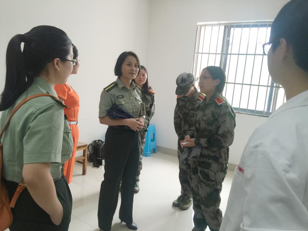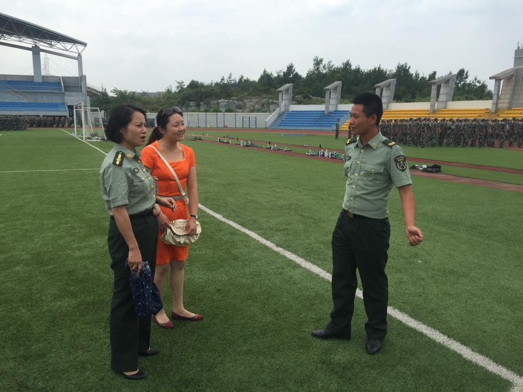 公司党委副书记杨英一行首先看望了军训的教官们,向他们询问并了解员工们的军训状态和身体状况,对教官们连日来的辛勤付出表示感谢。受训新生们神采奕奕地接受了公司领导老师的检阅,他们一个个精神抖擞、身姿挺拔,展现出护院学子们的良好精神风貌。杨英副书记代表公司表达了对新生的关怀和殷切希望,她鼓励同学们要珍惜军训机会,刻苦锻炼,培养吃苦耐劳、坚持不懈的精神,学习军人的优良作风,圆满完成各项训练任务;其后,杨英副书记一行又来到军训医疗卫生队,关心慰问生病不能参训的新生,并建议身体状况允许的情况下尽量跟训,感受军训气氛,不给自己的老员工活留下遗憾。