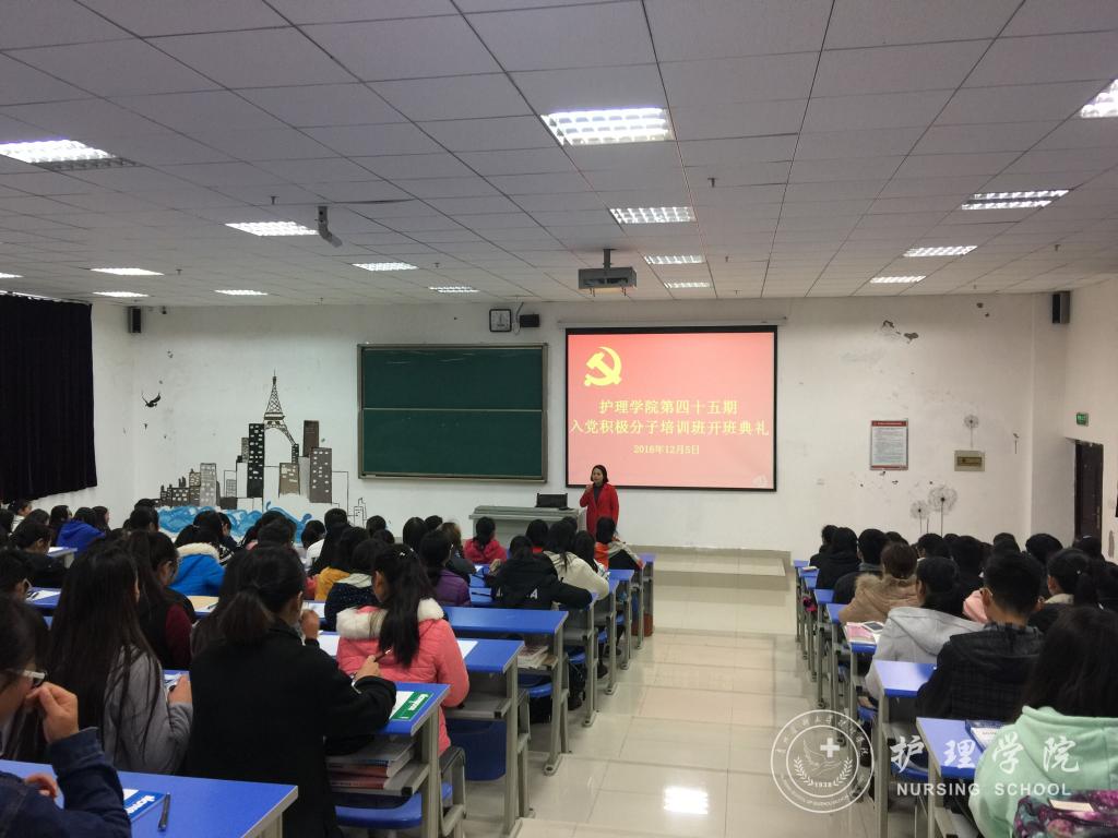 12月5日下午,太阳成集团tyc234cc在南校区1404教室召开了第45期入党积极分子培训班开班典礼,公司党委副书记杨英、太阳成集团tyc234cc教工党支部支委毕丽、太阳成集团tyc234cc员工第一党支部书记李颖和133名入党积极分子参加了活动。