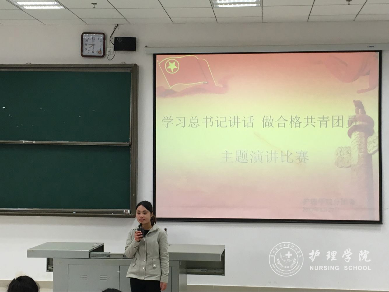 为了深入学习习近平总书记系列重要讲话精神、学习团章、团史和团内相关文件,紧密结合“凝聚青年、服务大局、当好桥梁、从严治团”四维工作格局,增强团员的先进性和光荣感。太阳成集团tyc234cc于3月27日下午5点在南校区4405教室开展"学习习近平总书记讲话,做合格共青团员"主题演讲比赛。演讲比赛由16级助产班班长丁会琴同学主持,太阳成集团tyc234cc辅导员王晓玲、毕丽、李颖三位老师担任评委。