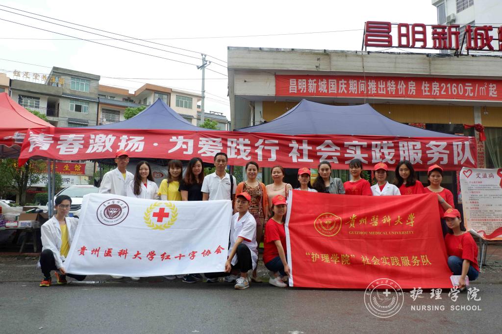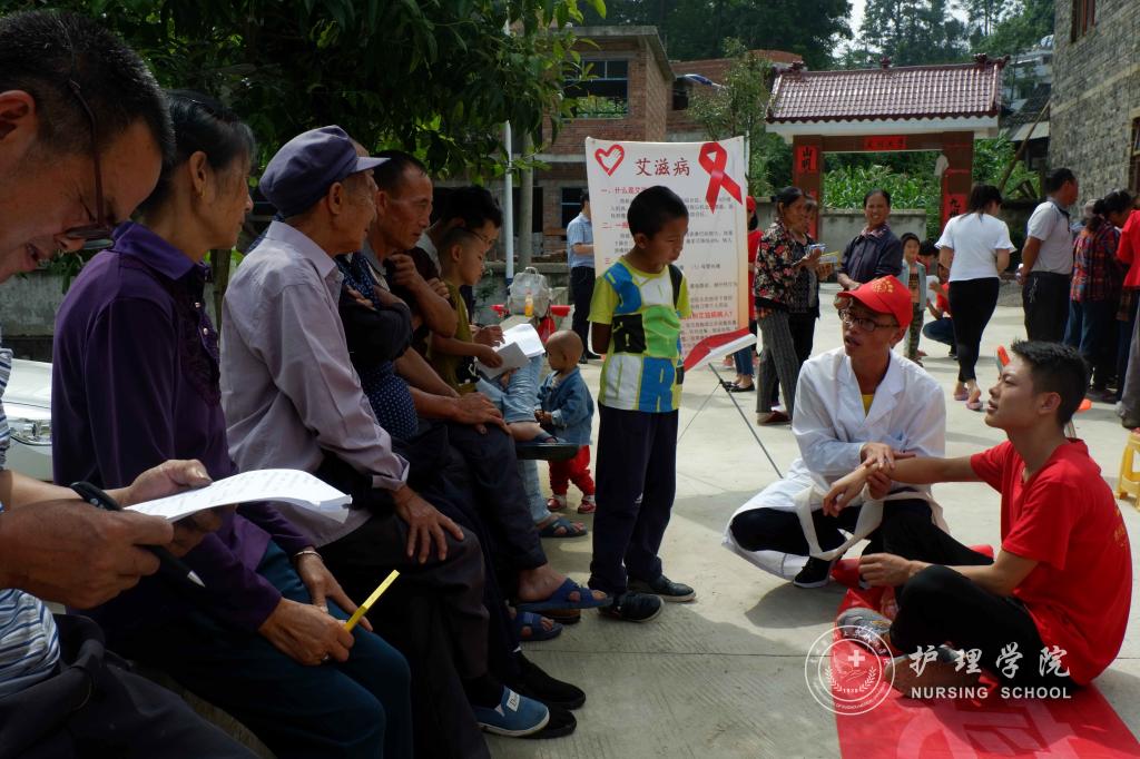 活动第一天上午9点,服务队到达贵定县昌明镇,杨英与当地政府签订了“共建老员工社会实践基地协议书”,随即,服务队在昌明镇分组开展了政策宣讲、乡情民情调研、发放常见病防治宣传单、常见病防治咨询、发放常用药品、为群众测量血压、预防艾滋病宣讲以及红十字急救培训八项服务。在服务过程中,同学们充分发挥自己的学科优势和专业技能,一方面从医学的角度向群众普及医学知识,以问卷调查的方式对当地居民展开乡情民情调研,了解当地医疗卫生现状以及居民对医学知识的了解程度。另一方面,同学们示范了常见外伤包扎方法,让更多的人在遇到危险时能够及时自救或帮助他人。同学们还针对艾滋病的传染源、传播途径以及易感人群三个方面向当地居民进行艾滋病知识的普及。