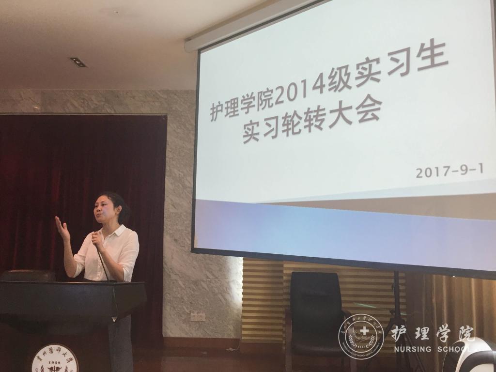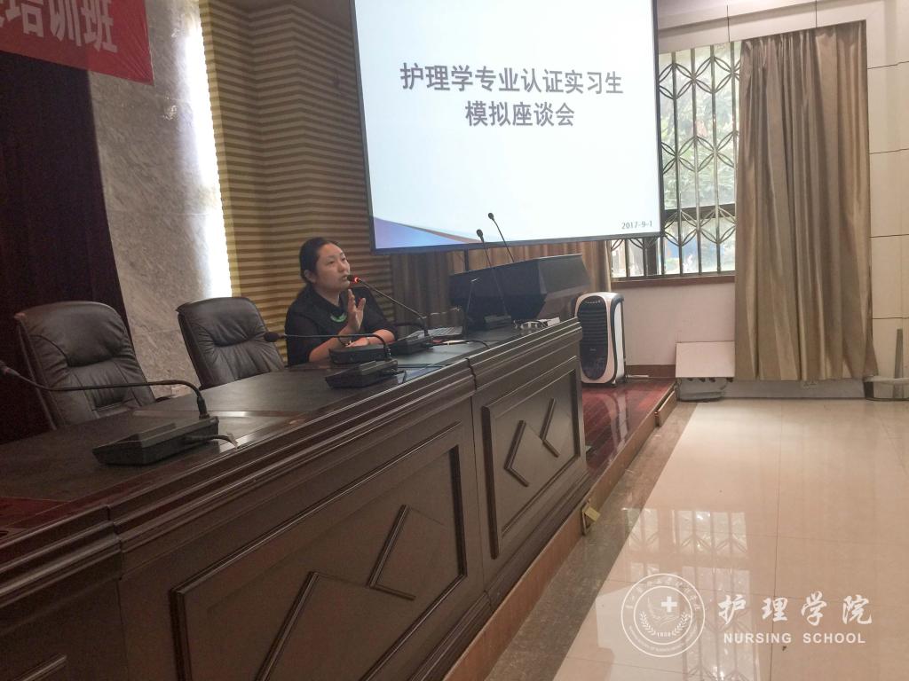 为保证护理学专业认证工作的顺利进行。9月1日,太阳成集团tyc234cc在北校区道德讲堂召开了实习生大会暨专业认证实习生模拟座谈会。太阳成集团tyc234cc副经理刘志燕、员工科科长曾敏、生产实习科科长柳忠燕、2014级辅导员李颖及全体贵阳地区实习生参加了本次会议。会议由李颖主持。