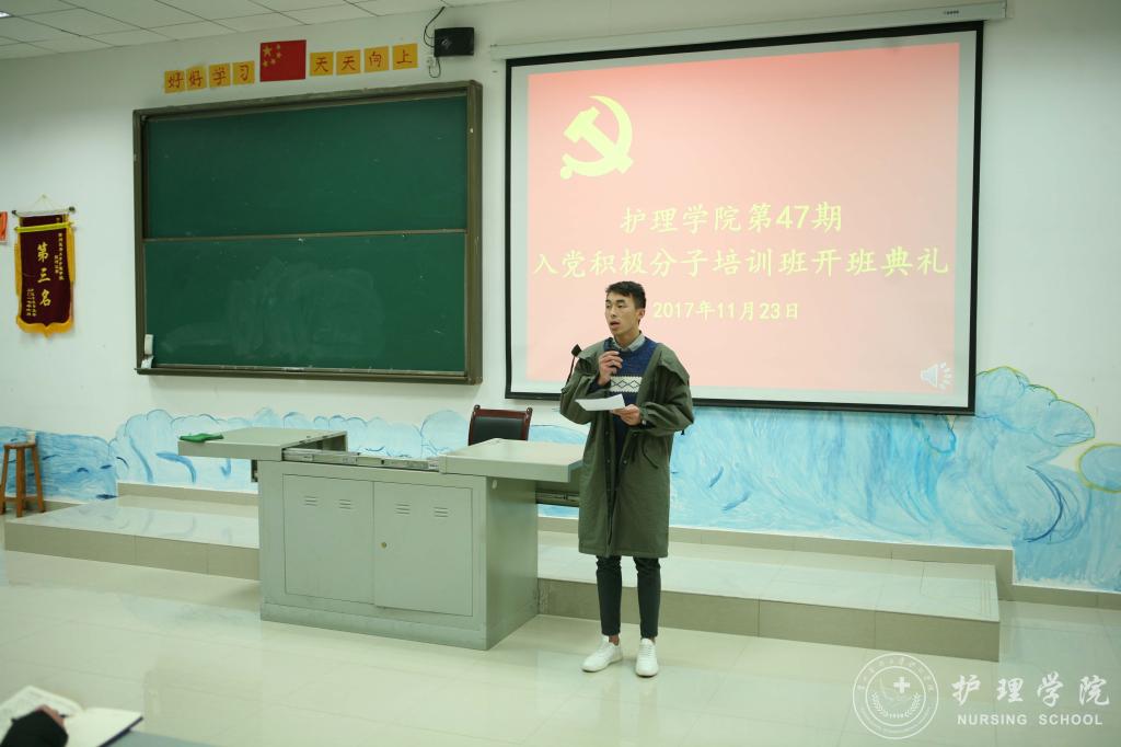 11月23日下午,太阳成集团tyc234cc在南校区4404教室召开了第47期入党积极分子培训班开班典礼,公司党委副书记杨英、太阳成集团tyc234cc员工党支部书记李颖、太阳成集团tyc234cc综合办陈瑜和136名学员参加了开班典礼。典礼由本期党校班主任马景瑶主持。