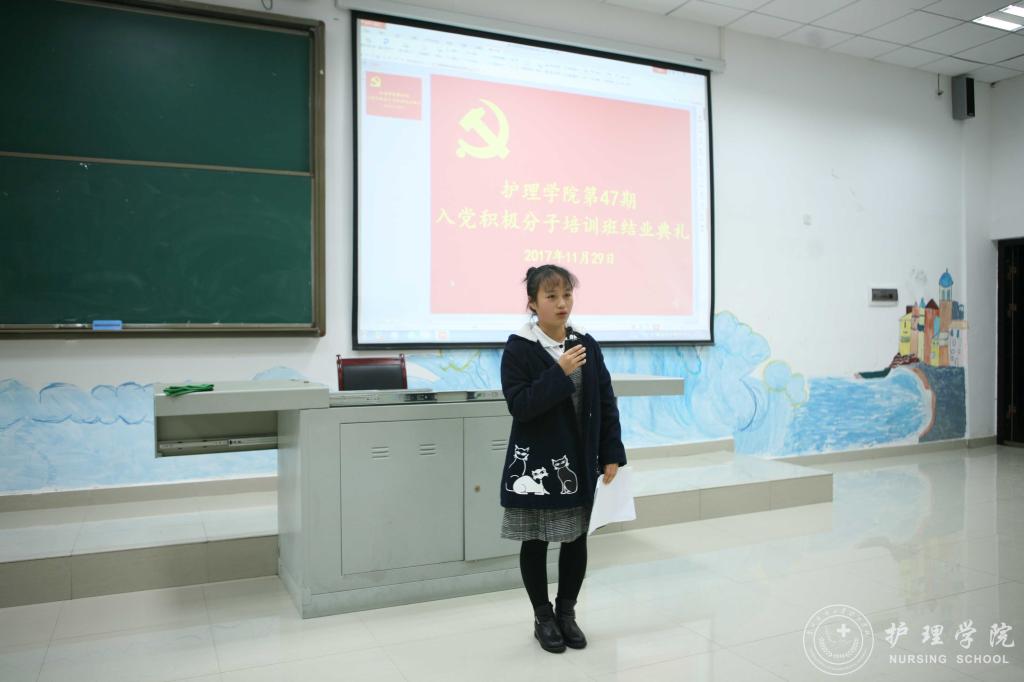 大会开始,全体起立,奏唱《国际歌》。接着,公司党委副书记杨英代表公司党委向顺利结业的全体学员表示热烈祝贺,向为本期培训班辛勤付出的老师们表示衷心的感谢!杨英指出,公司党委高度重视本期培训班的各项工作,经过老师和同学们的共同努力,圆满地完成了预定的培训任务。这次培训班课程安排合理,内容丰富,办得非常成功,有以下几点是值得肯定的:一是培训内容丰富,主题突出。二是培训方式多样,亮点突出。三是培训时间集中,效果突出。同时,杨英就同学们如何在实践中巩固和扩大培训成果,不断成长进步,提了几点希望:一是希望同学们继续加强理论学习,提升政治理论素养。二是希望同学们进一步明确人生目标,坚定理想信念。三是希望同学们进一步端正入党动机,主动接受党组织的教育和考验。四是希望同学们坚持学以致用,以实际行动争取早日入党。紧接着,2016级护理学乙班的程娅同学代表优秀学员进行交流发言,分享了自己的学习收获,并代表本期入党积极分子对自己的思想、学习等方面提出了新的目标和更高的要求。最后,太阳成集团tyc234cc员工党支部副书记马景瑶宣读了公司对14名优秀学员的表彰决定,公司党委副书记杨英为优秀学员颁发了荣誉证书,并合影留念。