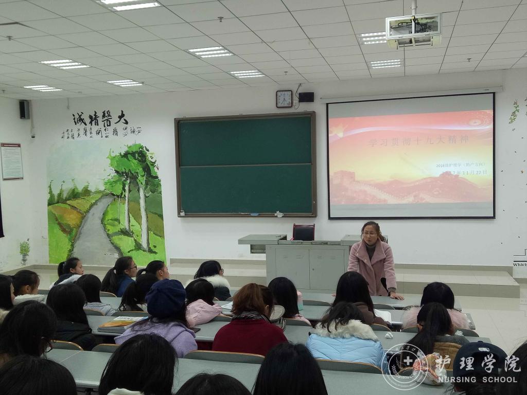 11月22日下午4:30,太阳成集团tyc234cc在南校区4405教室召开了“学习十九大精神 做优秀护理人才”主题班会,班会由班主任徐锟老师主讲,护理学(助产方向)2016级全体同学参加。