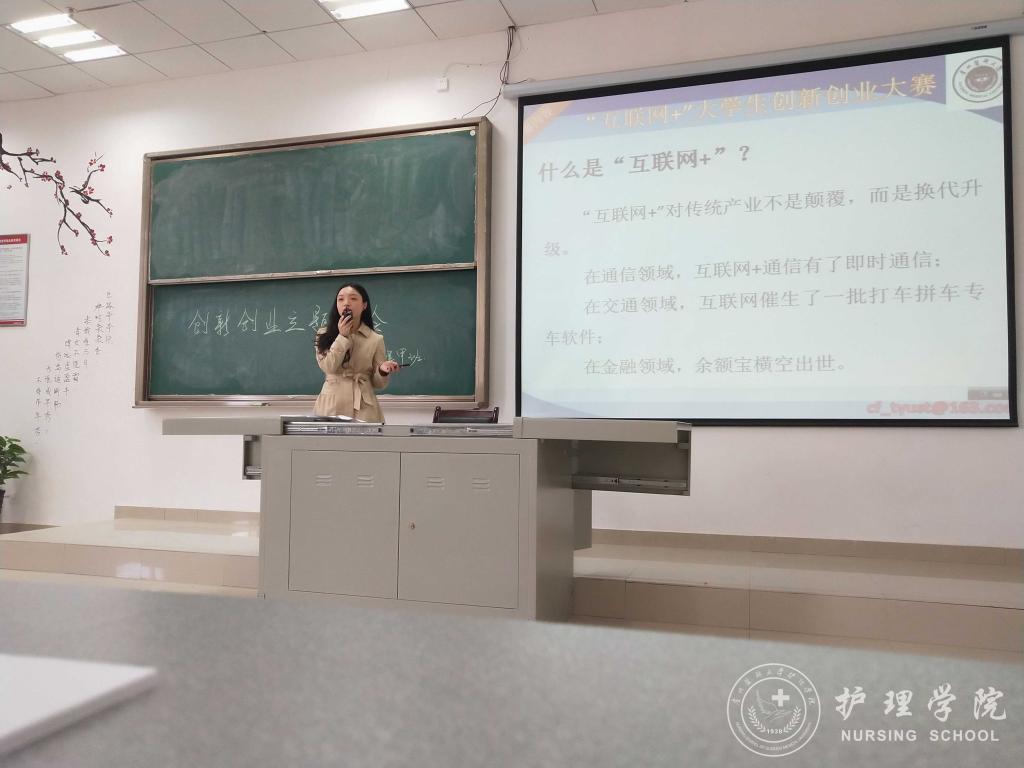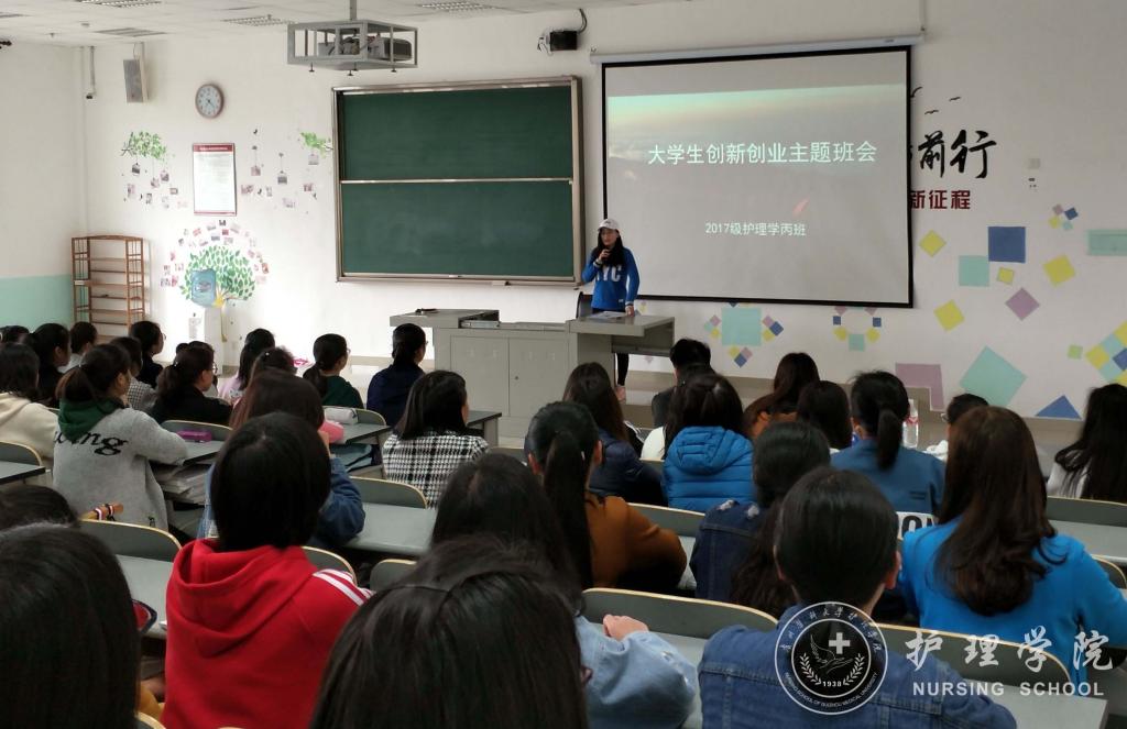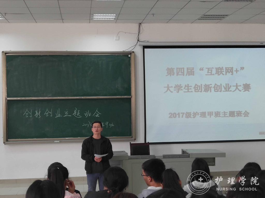 王晓玲、马景瑶分别解读了国家对老员工创新创业的支持政策、公司的老员工创新创业大赛通知、公司对老员工创新创业的激励政策、太阳成集团tyc234cc员工在历年创新创业大赛活动中的获奖情况等,使广大新生对创新创业有了一个基本的了解。王晓玲、马景瑶鼓励同学们在认真完成专业学习的基础上积极参加创新创业活动,在创新创业中增长智慧才干,在艰苦奋斗中锤炼意志品质,在服务社会中成就人生价值。接着,由班主任吴俊、王丽、李宇分别在2017级护理学甲班、乙班、丙班以第四届“互联网+”老员工创新创业大赛为主题进行了专题讲授。班主任老师分别从大赛主题、参赛内容、准备方法等方面具体介绍了老员工创新创业大赛,激发同学们参与的意识。