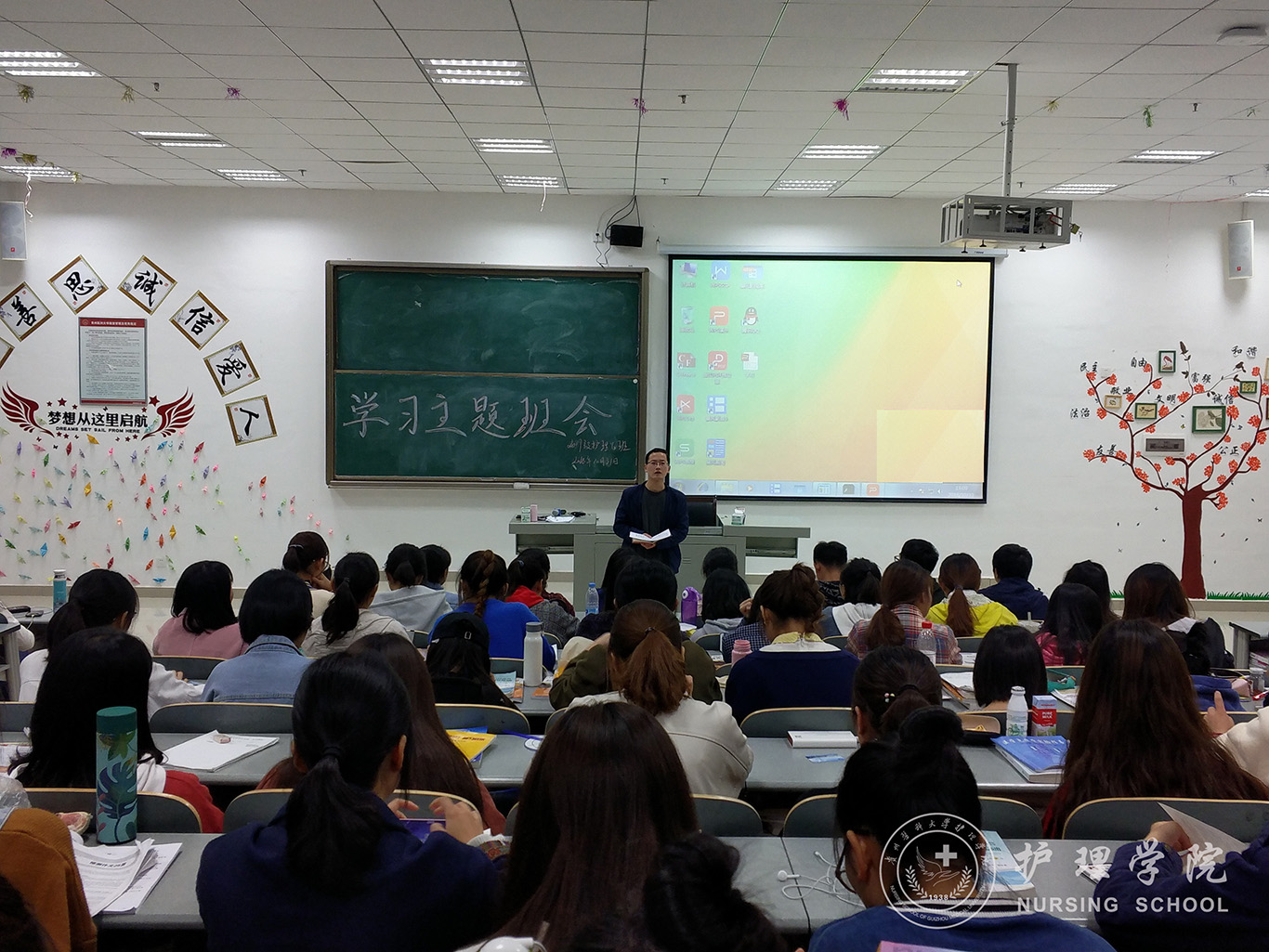 为了激励同学们勤奋学习,增强同学们的自主学习意识,营造良好的班风学风,10月31日晚上,太阳成集团tyc234cc在南校区7404、7406教室召开新学期学习主题班会。本次班会由2017级辅导员马景瑶老师主持,2017级护理学甲班、乙班全体同学参加。