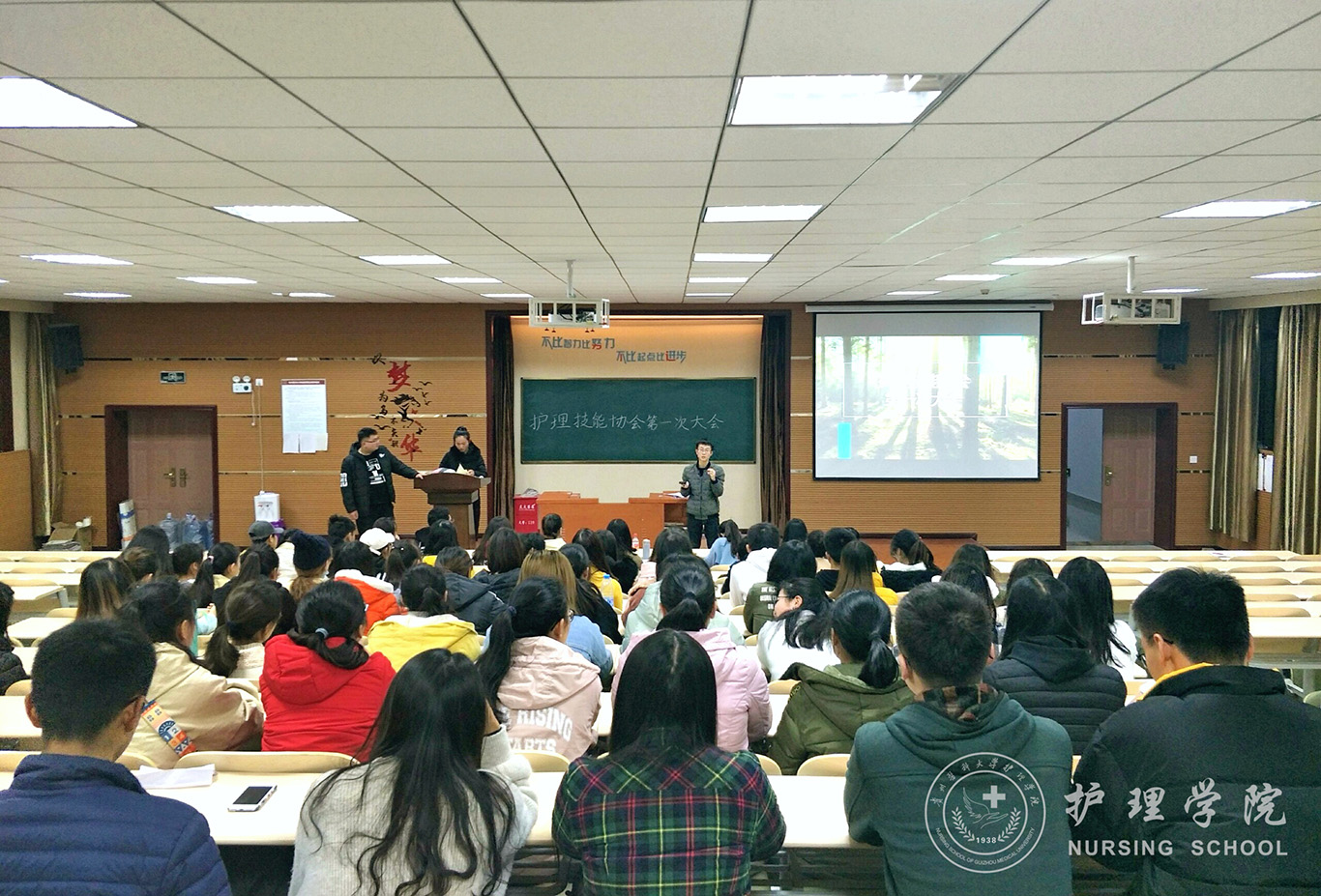 11月23日下午,护理技能协会在南校区百川楼一楼阶梯教室召开了本学期总结会,参加本次会议的同学有会长范诚、副会长王瑞、刘文壮、申思蓉和各部门部长、副部长以及2017级、2018级全体协会成员。本次大会由刘文壮主持。
